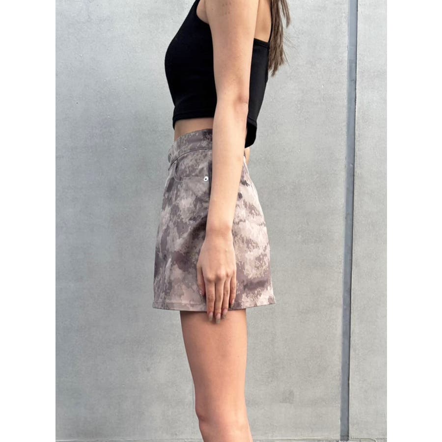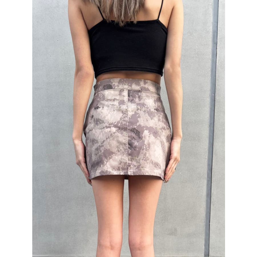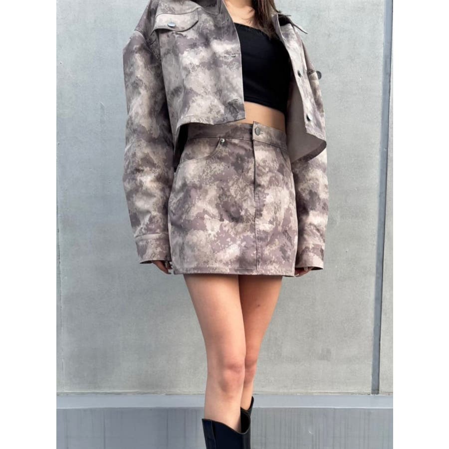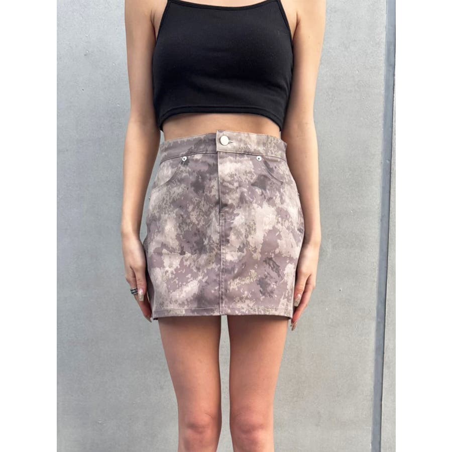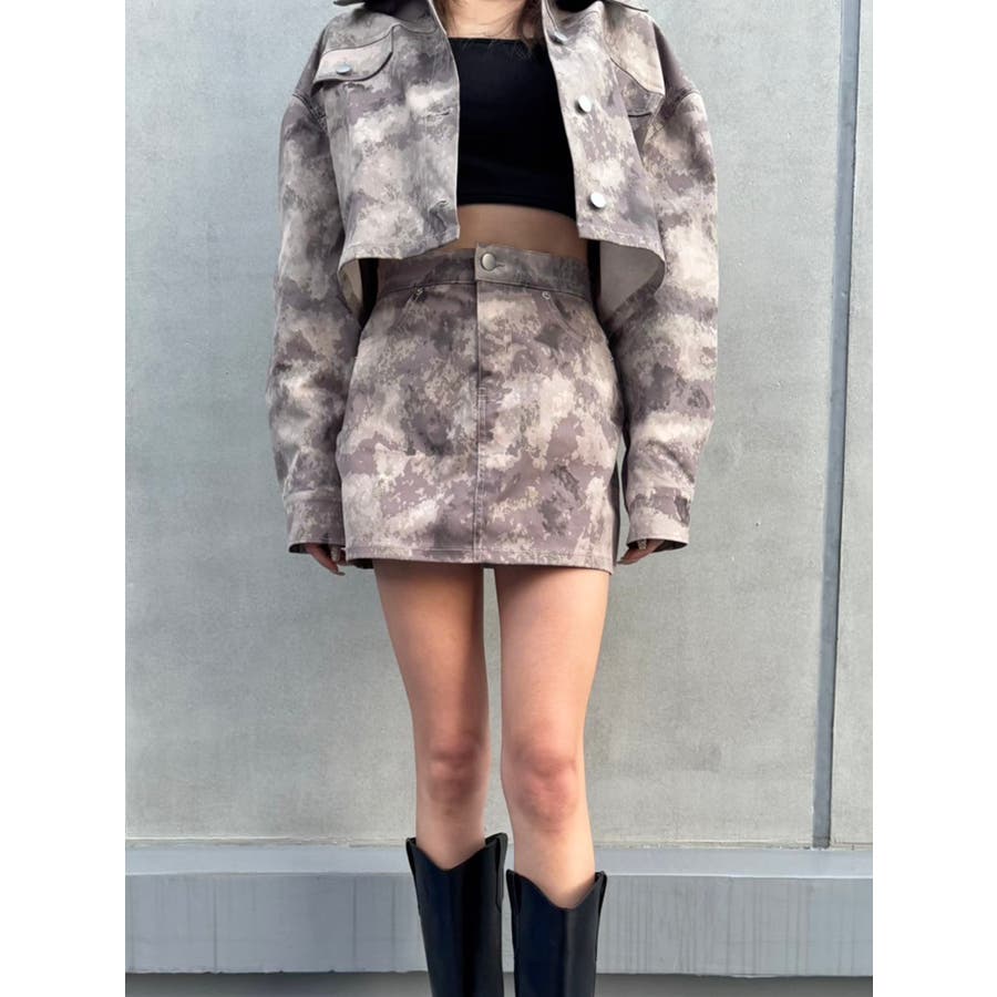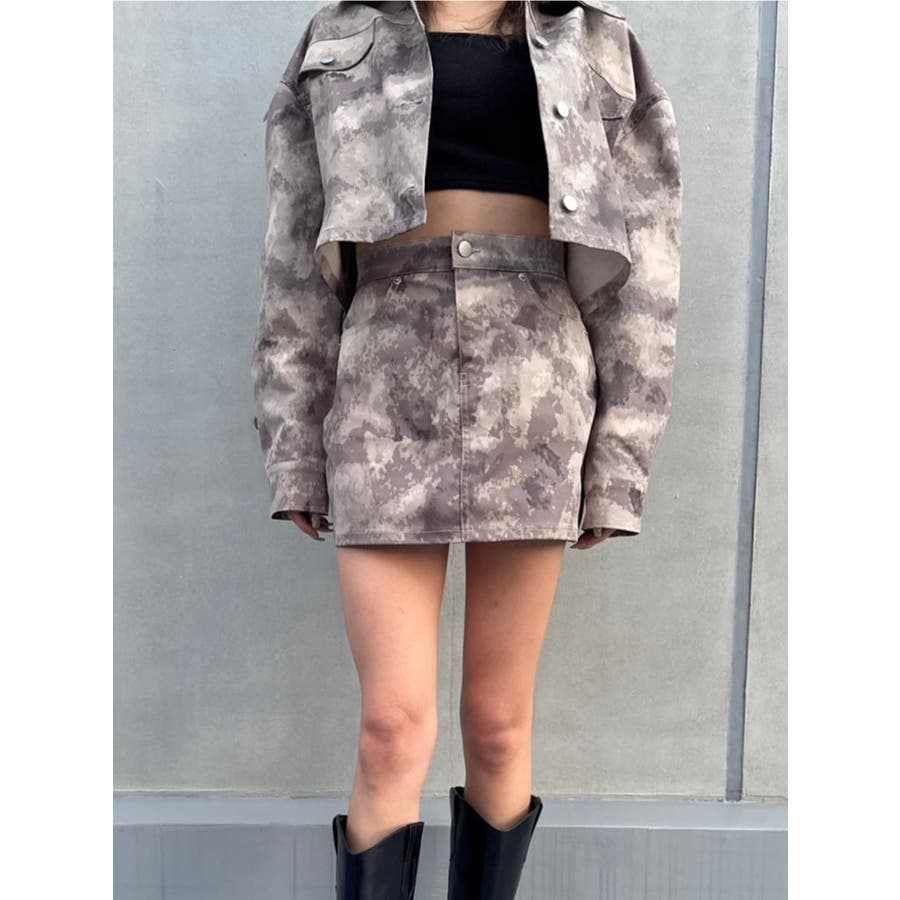 淡いトーンのニュアンス柄が目を惹くタイトミニスカート。型崩れしにくくしっかりとした生地感は程よく張り感があり高みえします。薄手のインナーパンツ付きなのでミニ丈でも安心して履いて頂けます。季節感問わない色味、柄になっているのでシーズン通して長く愛用して頂けます。コンパクトなシルエットなのでボリュームアイテムと相性抜群。(125018904001とSETUPで着用可)