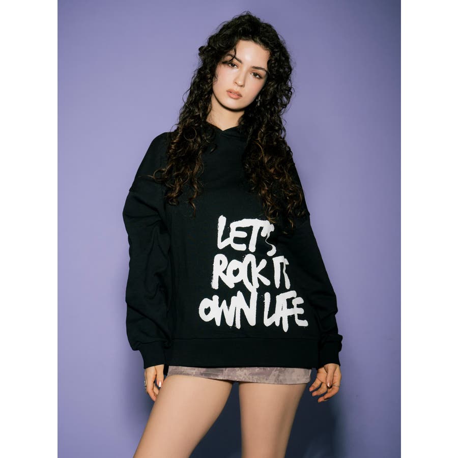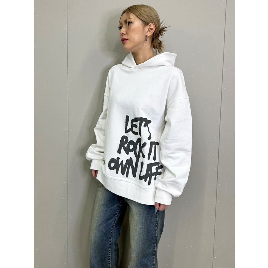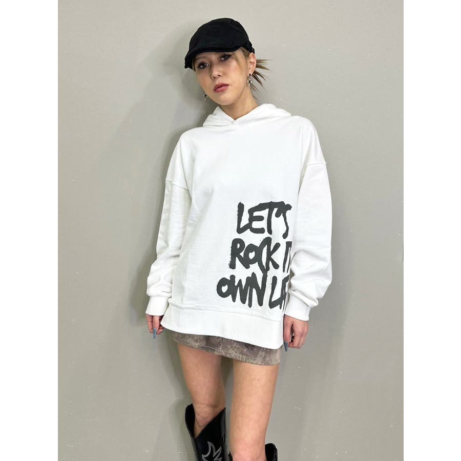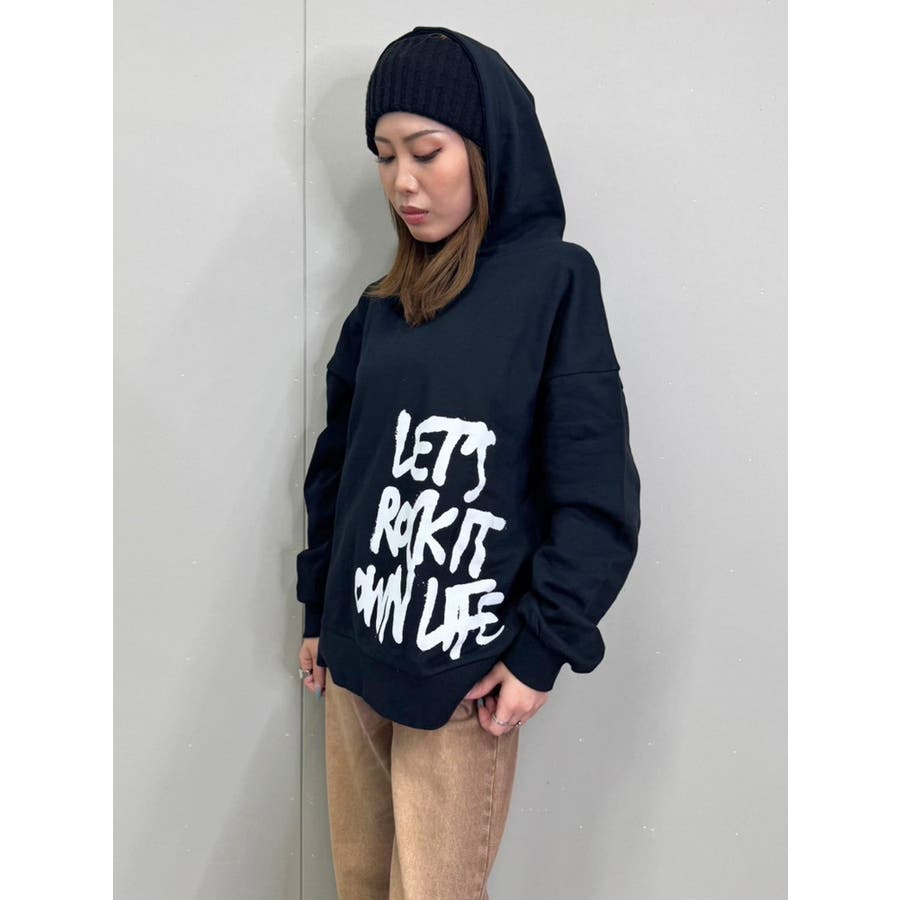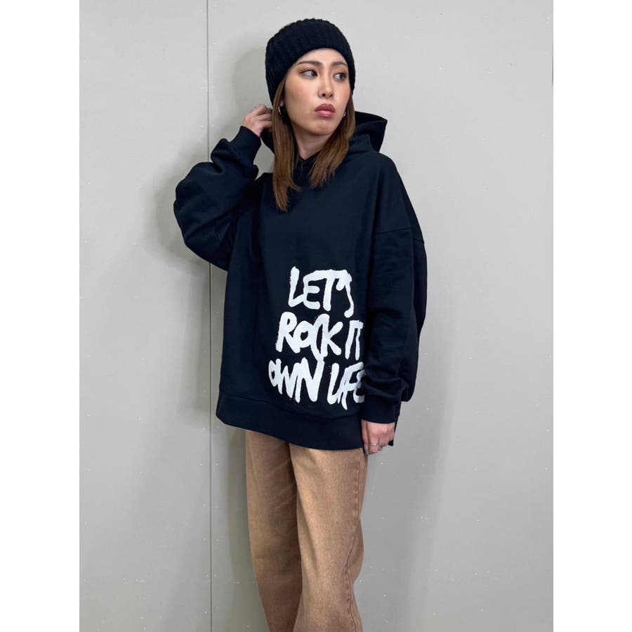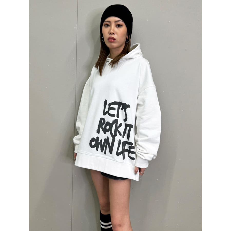大人気の手書き風ロゴプリントアイテムが今季はパーカーになって登場。『Let’s rock it』(楽しもうぜ)と『own life』(自分の人生)を掛け合わせて【自分の人生を楽しもう!】というポジティブな意味を込めています。裾にダイナミックに入れた文字が目を惹きます。たっぷりと余裕のあるサイジングになっているのでユニセックスで着用可。友達やカップルでペアルックするのもおススメ。厚すぎずさらっとした裏毛生地なのでシーズンレスで長い期間愛用して頂けます。生地が分厚くないのでトレンドのレザージャケットやトレンチなどライトアウターも羽織りやすいです。