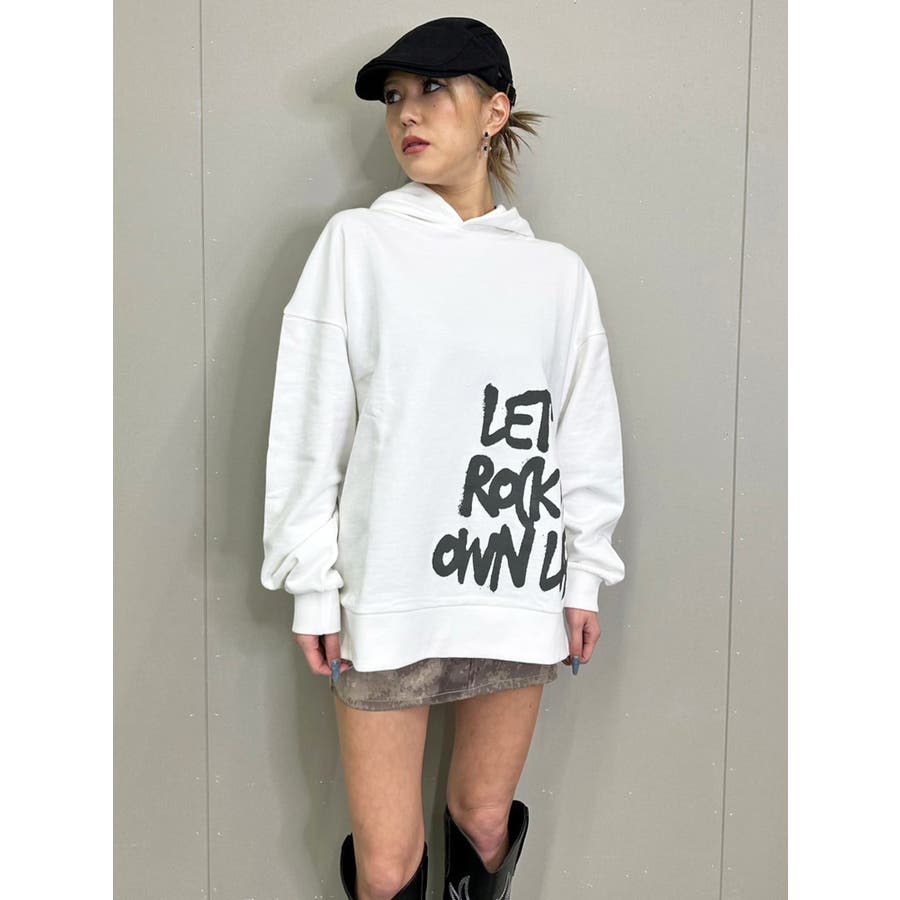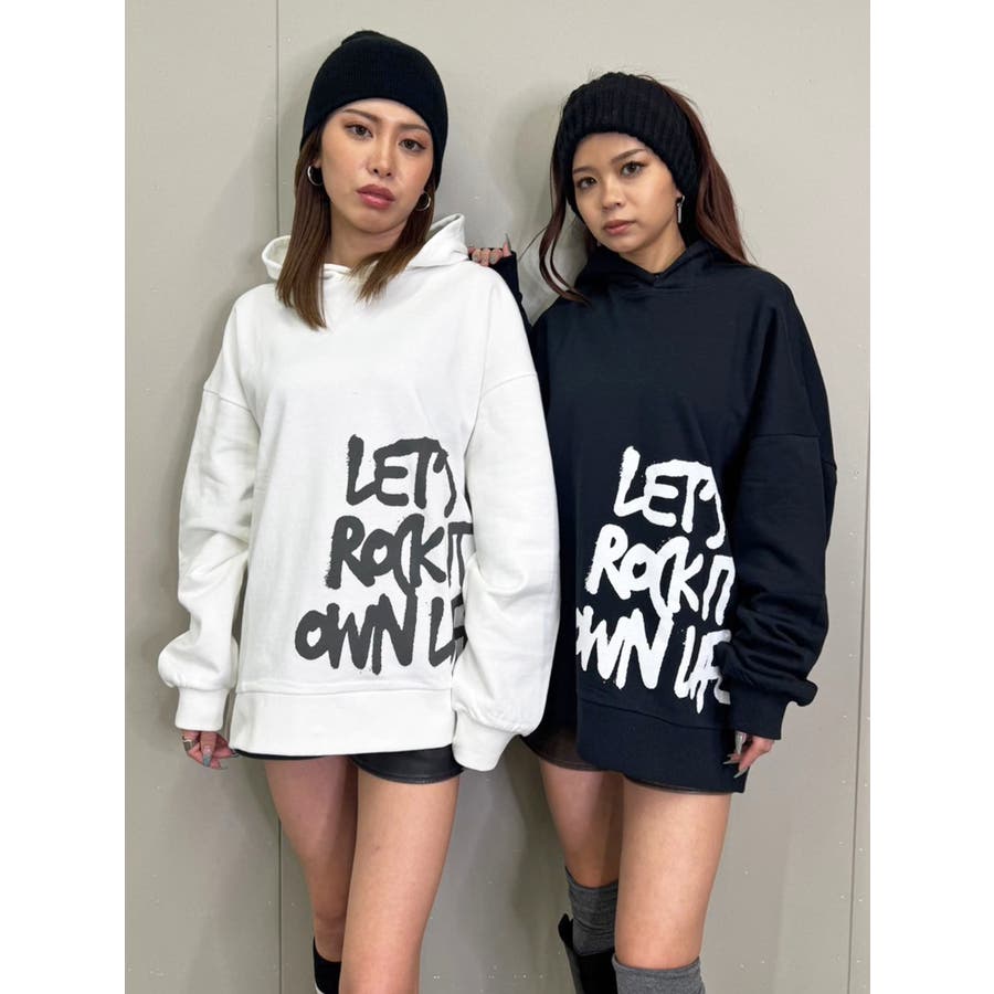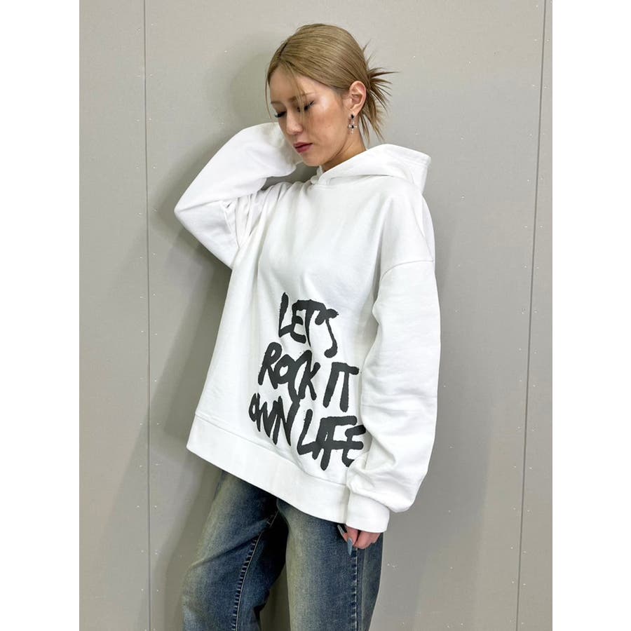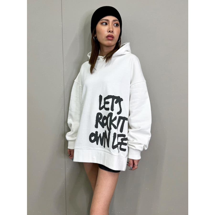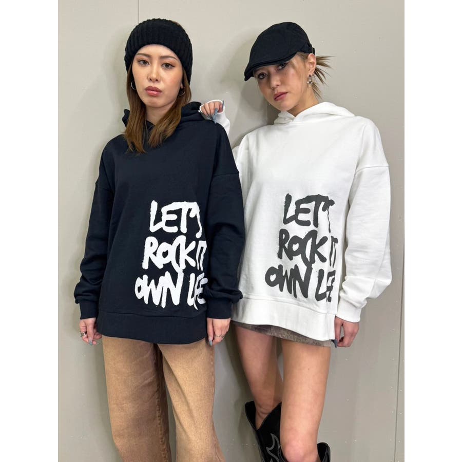 大人気の手書き風ロゴプリントアイテムが今季はパーカーになって登場。『Let’s rock it』(楽しもうぜ)と『own life』(自分の人生)を掛け合わせて【自分の人生を楽しもう!】というポジティブな意味を込めています。裾にダイナミックに入れた文字が目を惹きます。たっぷりと余裕のあるサイジングになっているのでユニセックスで着用可。友達やカップルでペアルックするのもおススメ。厚すぎずさらっとした裏毛生地なのでシーズンレスで長い期間愛用して頂けます。生地が分厚くないのでトレンドのレザージャケットやトレンチなどライトアウターも羽織りやすいです。