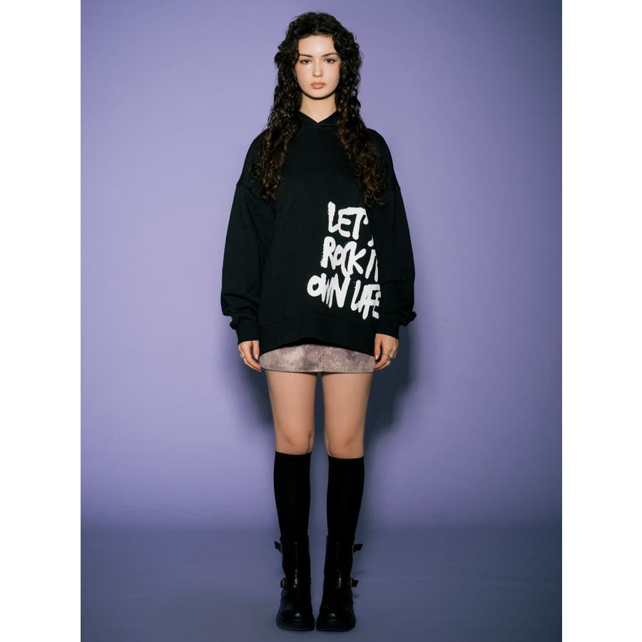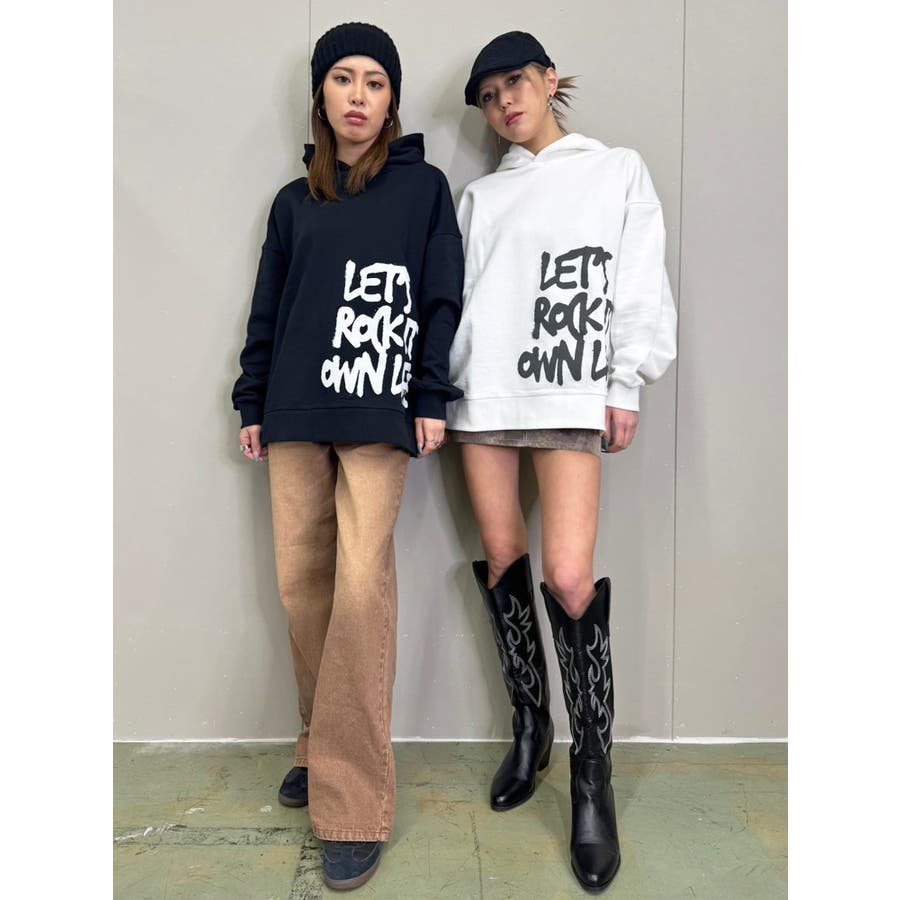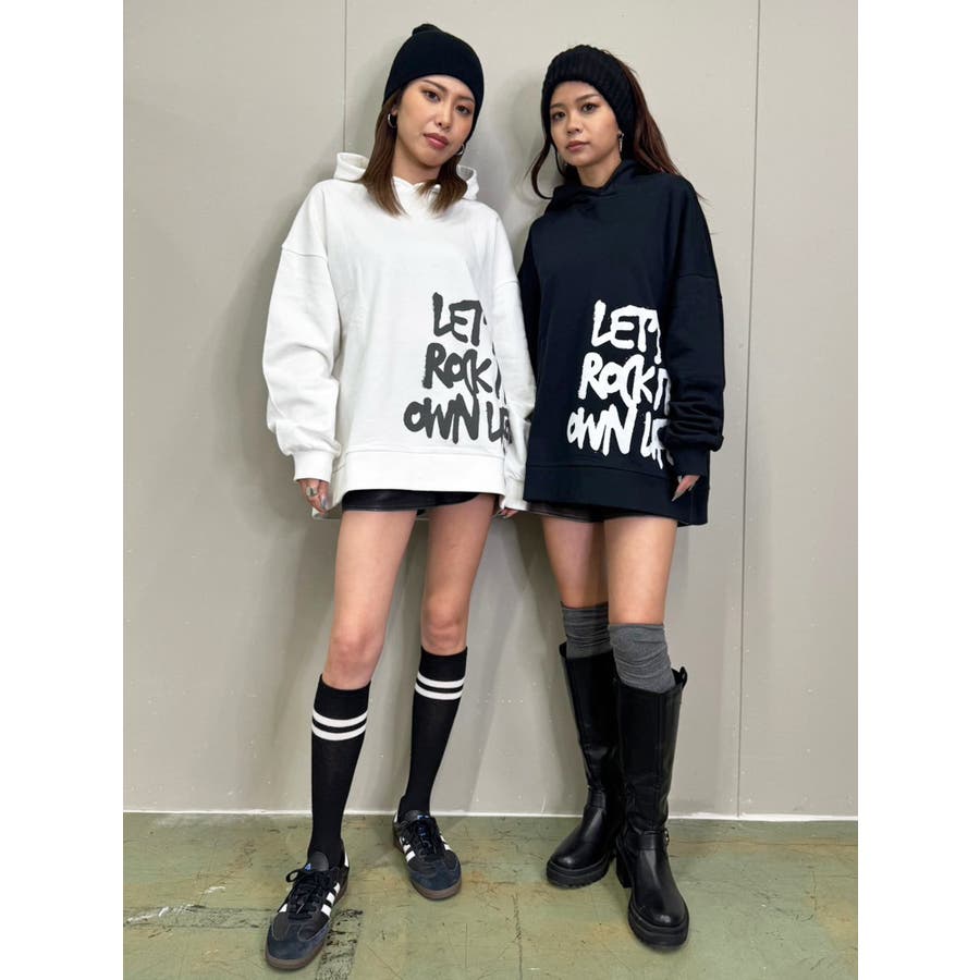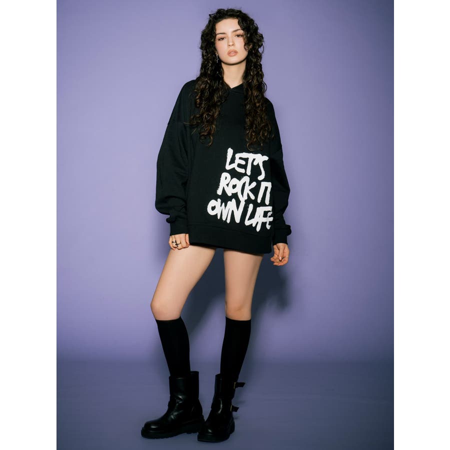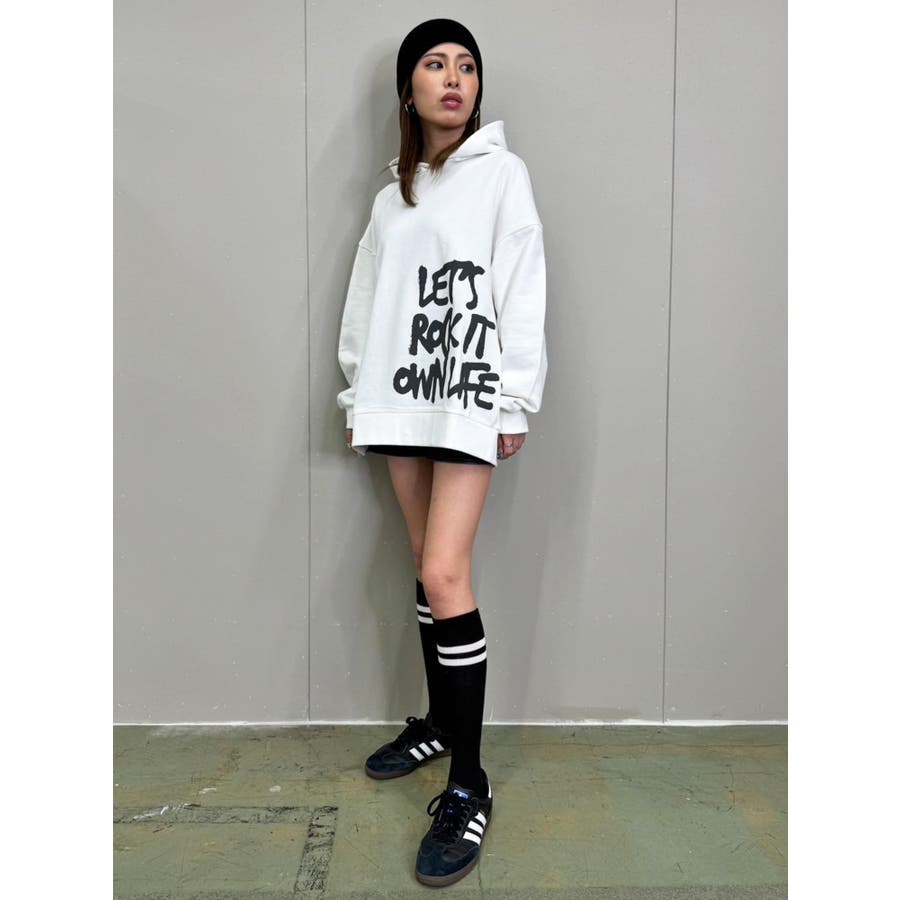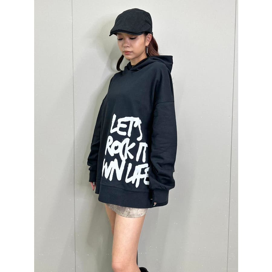 大人気の手書き風ロゴプリントアイテムが今季はパーカーになって登場。『Let’s rock it』(楽しもうぜ)と『own life』(自分の人生)を掛け合わせて【自分の人生を楽しもう!】というポジティブな意味を込めています。裾にダイナミックに入れた文字が目を惹きます。たっぷりと余裕のあるサイジングになっているのでユニセックスで着用可。友達やカップルでペアルックするのもおススメ。厚すぎずさらっとした裏毛生地なのでシーズンレスで長い期間愛用して頂けます。生地が分厚くないのでトレンドのレザージャケットやトレンチなどライトアウターも羽織りやすいです。