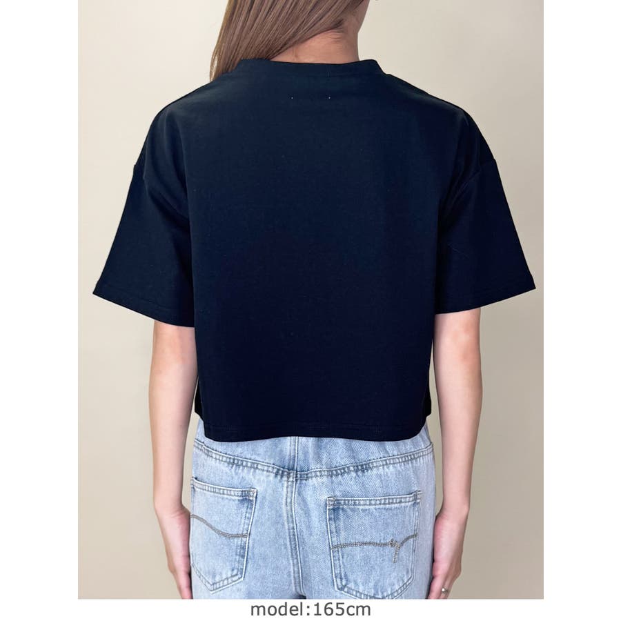 フロントに配色でワンポイント刺繍を施したショート丈Tシャツ。
