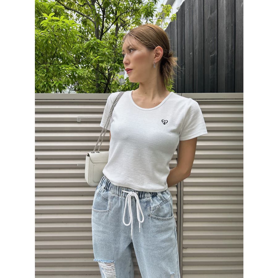 左胸に入れたオリジナルHEARTロゴの配色刺繍がワンポイントになったTシャツ。