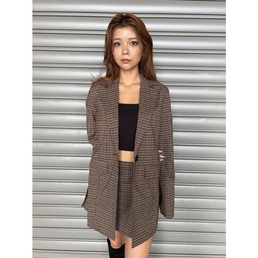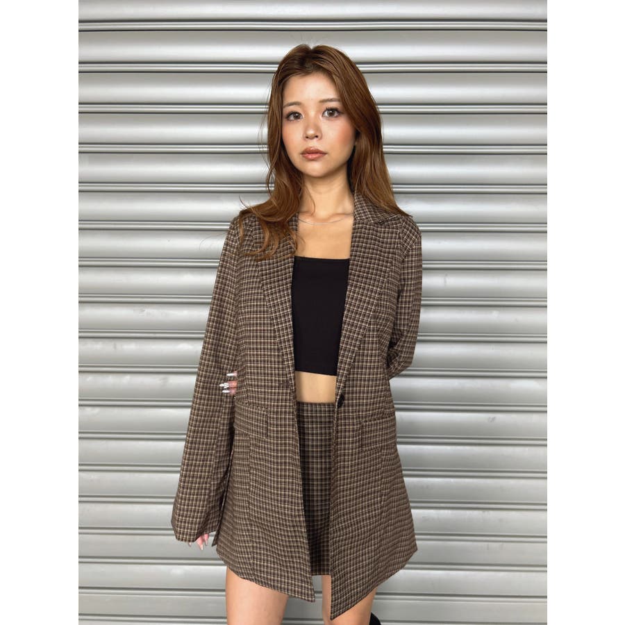羽織るだけで女性らしい美シルエットが叶う、チェック柄のシングルジャケット。