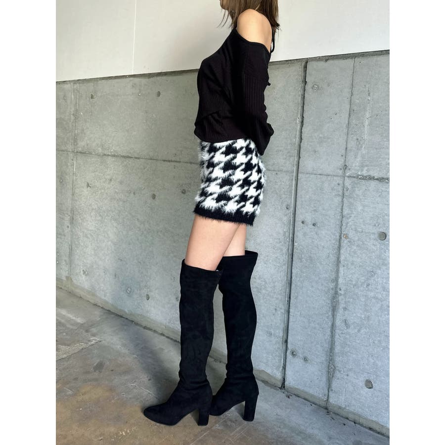大きめの千鳥柄が存在感抜群なシャギーニットショートパンツ。