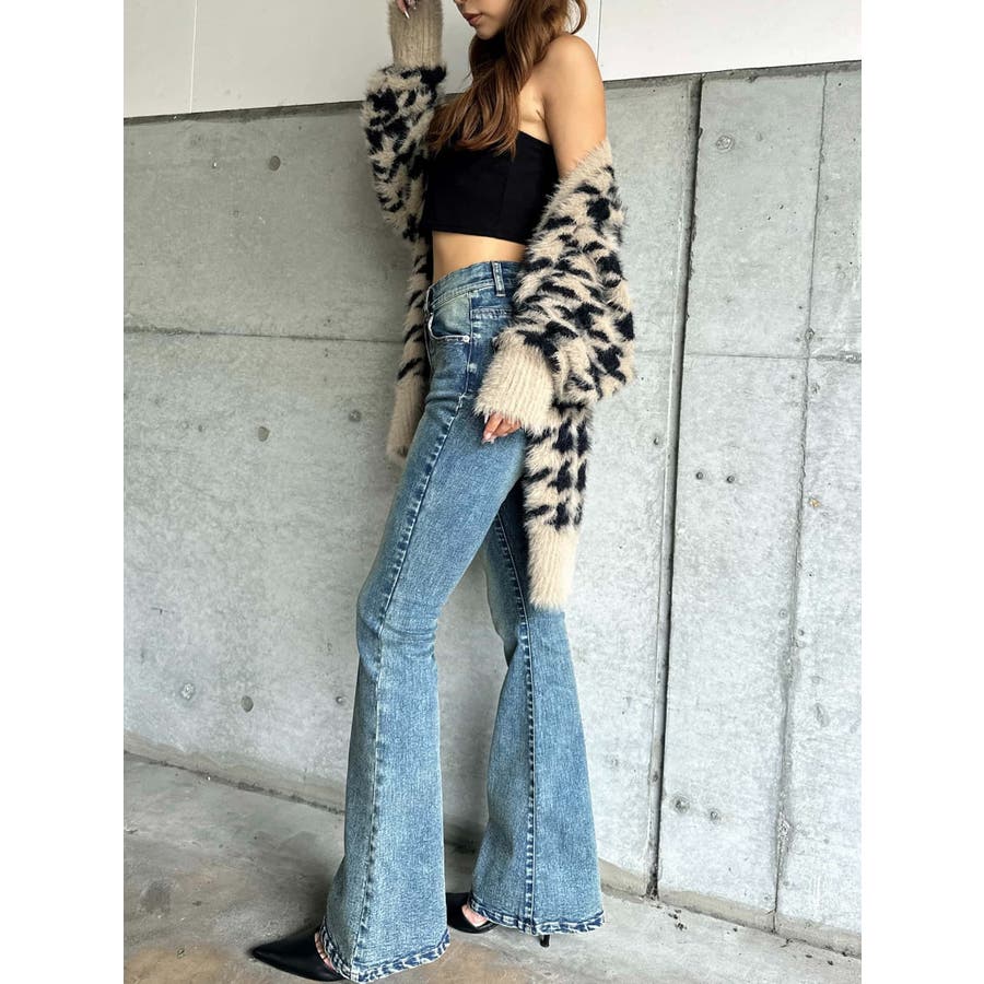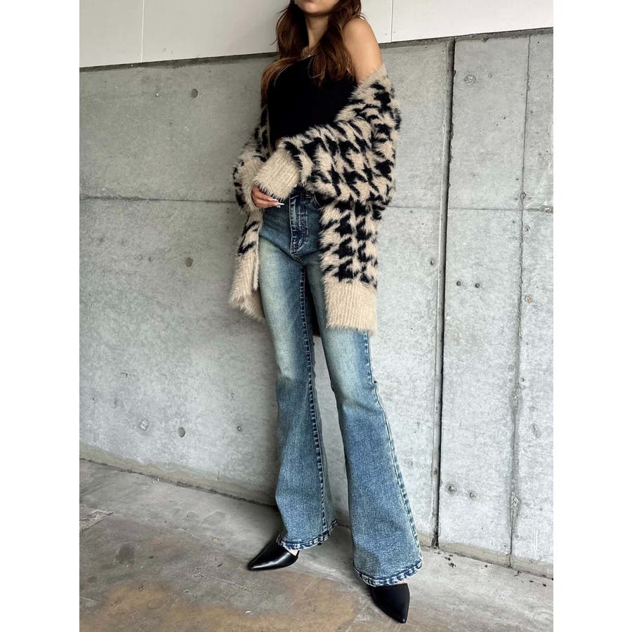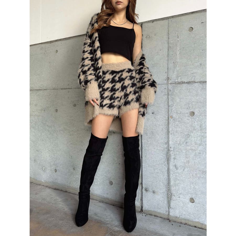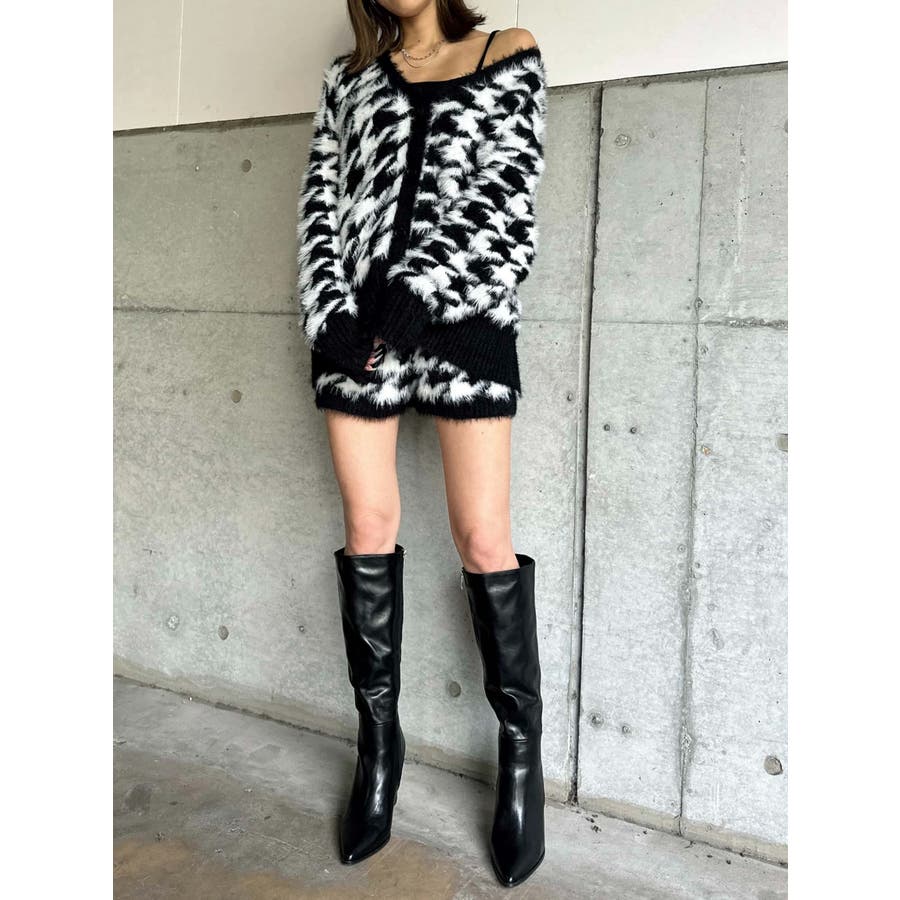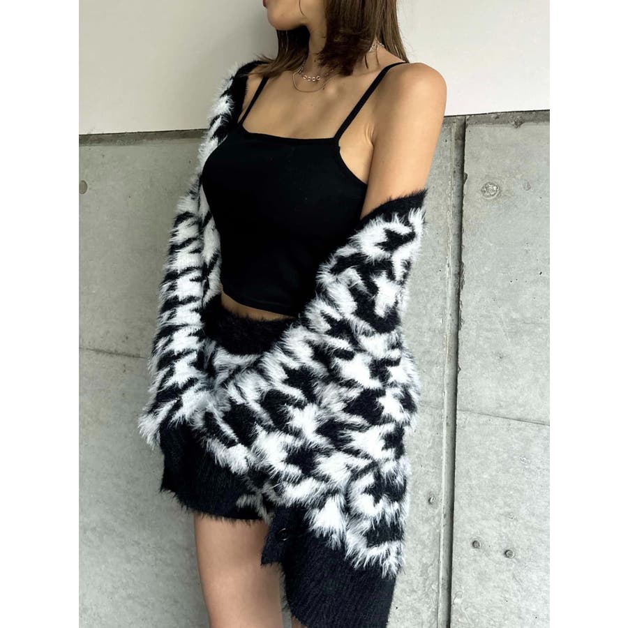 大きめの千鳥柄が存在感抜群で着るだけで映えるシャギーニットカーディガン。