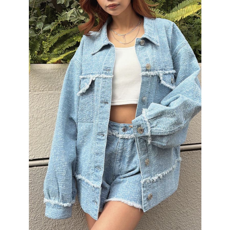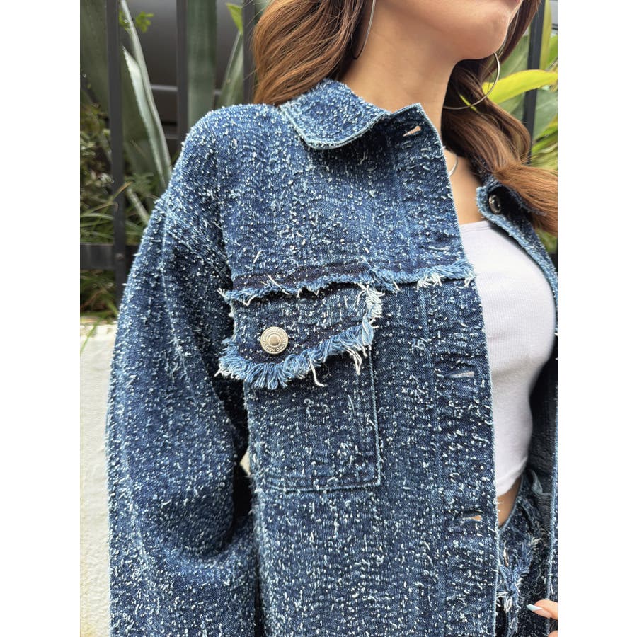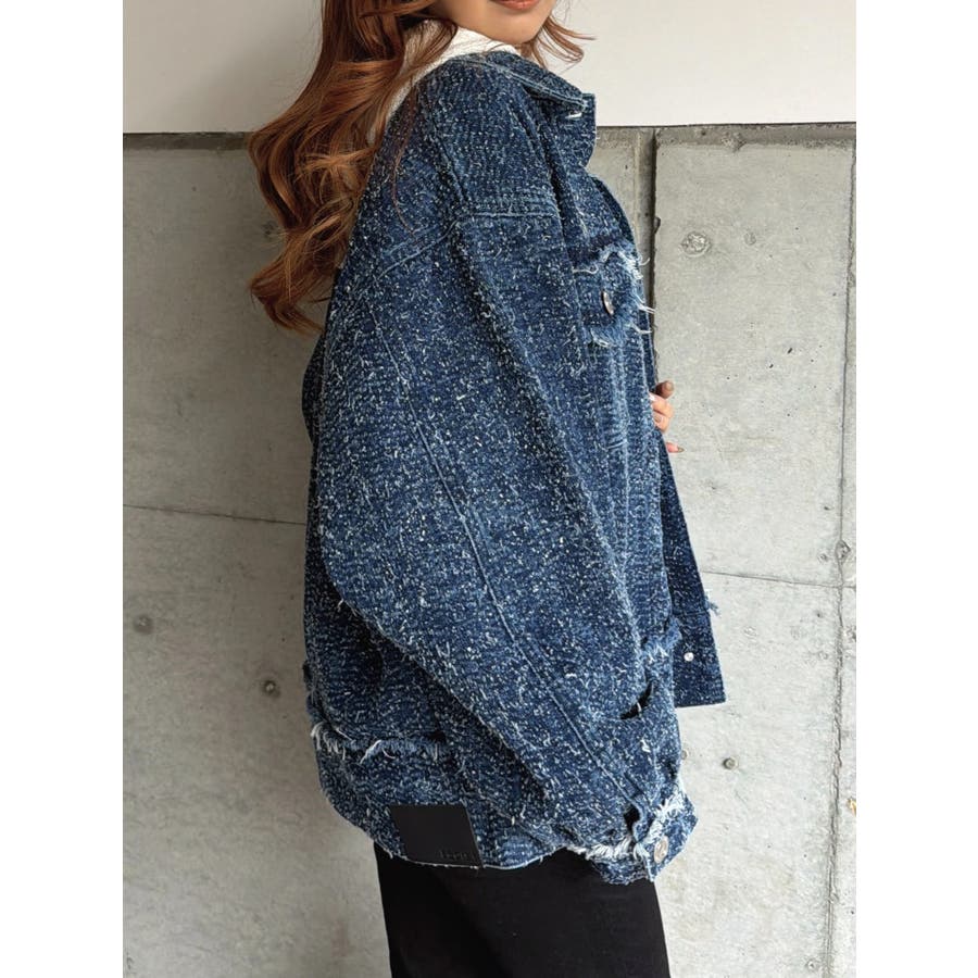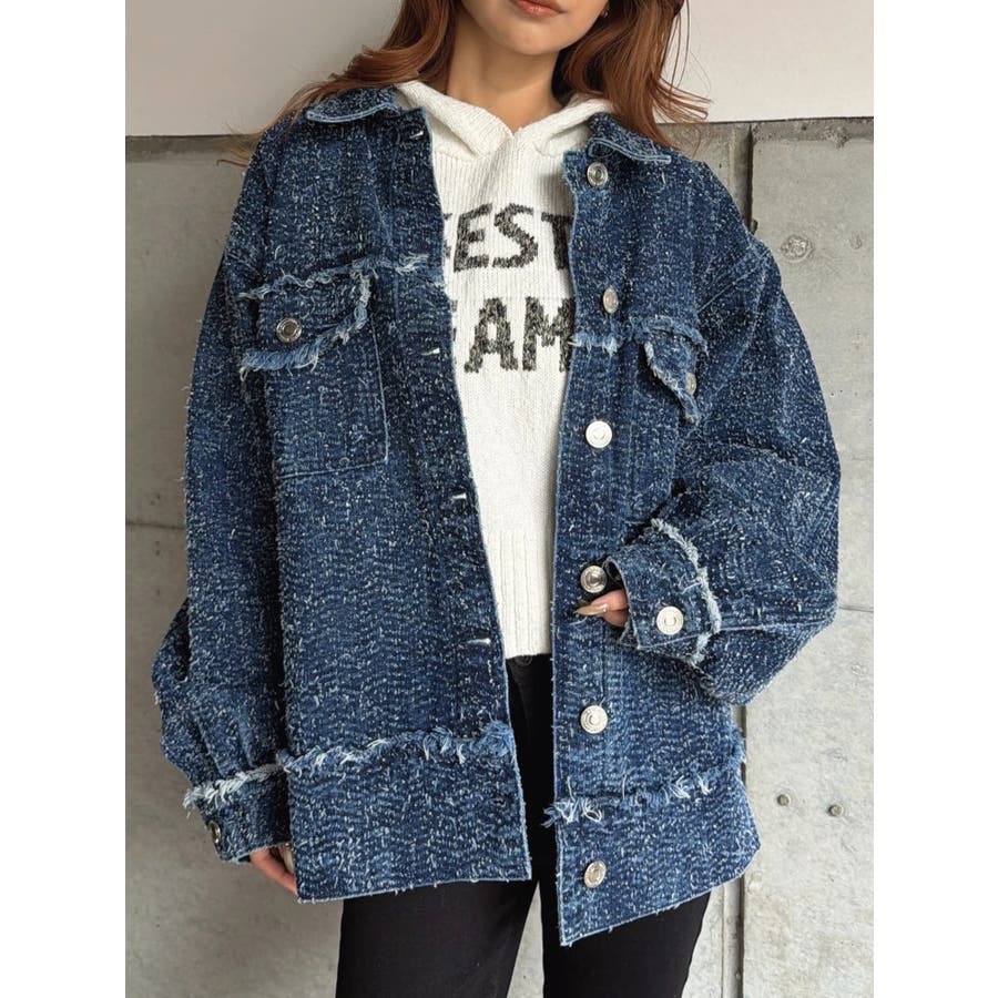 ツイード×デニムの新素材が映える、今までにない表情のGジャン。胸元、袖口、裾にポイントでフリンジを入れ、更に遊び心をプラス。
