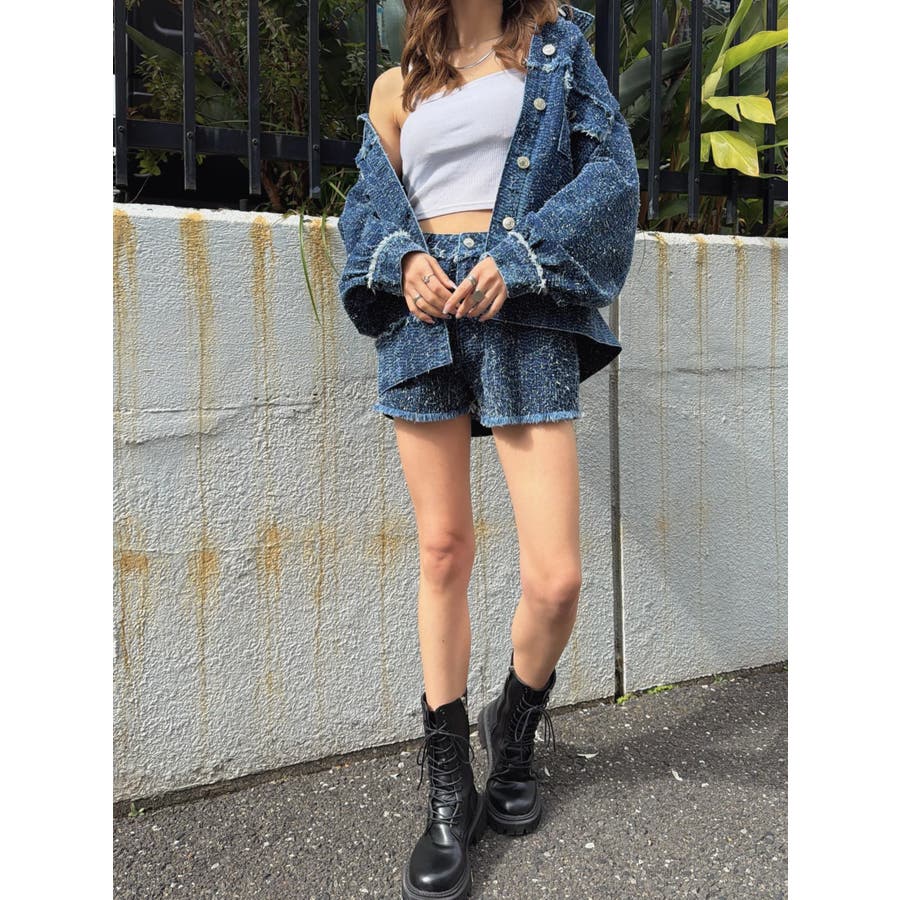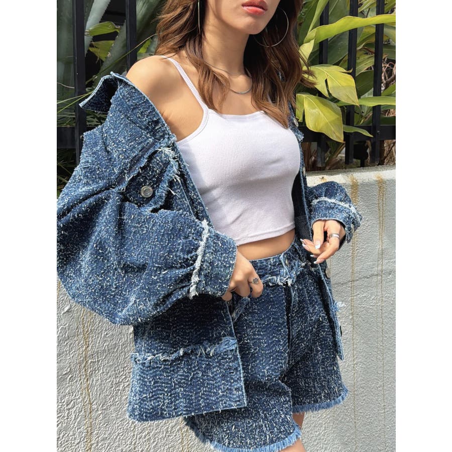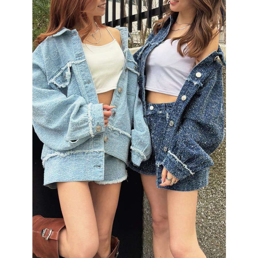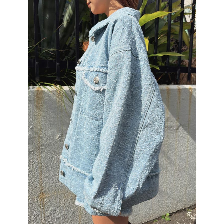 ツイード×デニムの新素材が映える、今までにない表情のGジャン。胸元、袖口、裾にポイントでフリンジを入れ、更に遊び心をプラス。