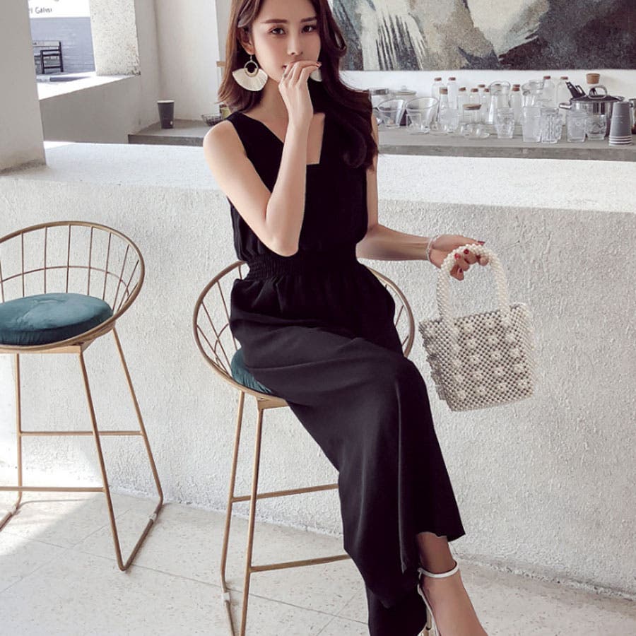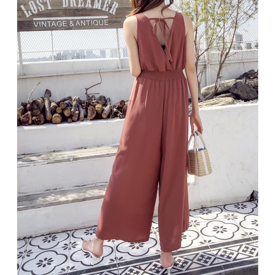 ノースリーブトップス Vネック は、 セクシー で 胸下 ギャザー は 細見え効果抜群! Aライン シルエット で、 体型カバー 足長効果 !