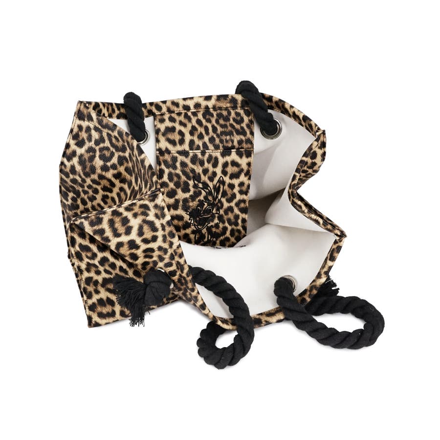 内ポケットには本体のカラーに合わせてブラックにはBUNNYのプリント、レオパードにはBUNNYの刺繍を施しています。
