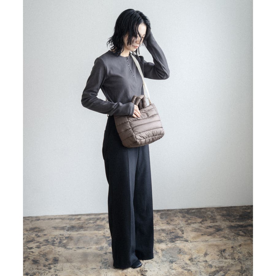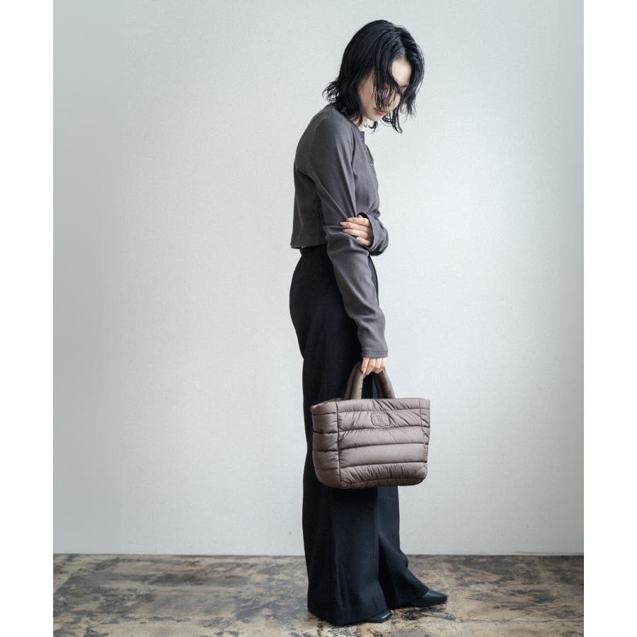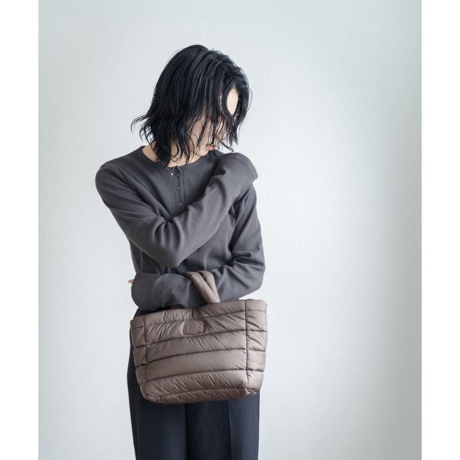 柔らかな肌触りにキルティングミニトートは、普段使いにちょうどいいサイズ感。
