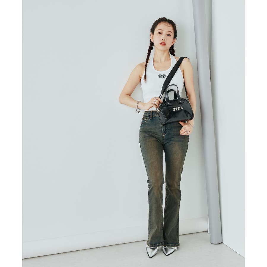 どこかスポーティさを兼ね備え、Y2Kファッションで人気の高いエナメルボストンバッグのディテールをそのままに使い勝手の良いデニム素材とフェイクレザーで仕上げたELGAES限定アイテム。