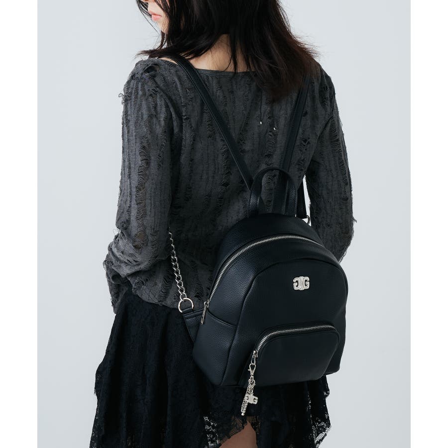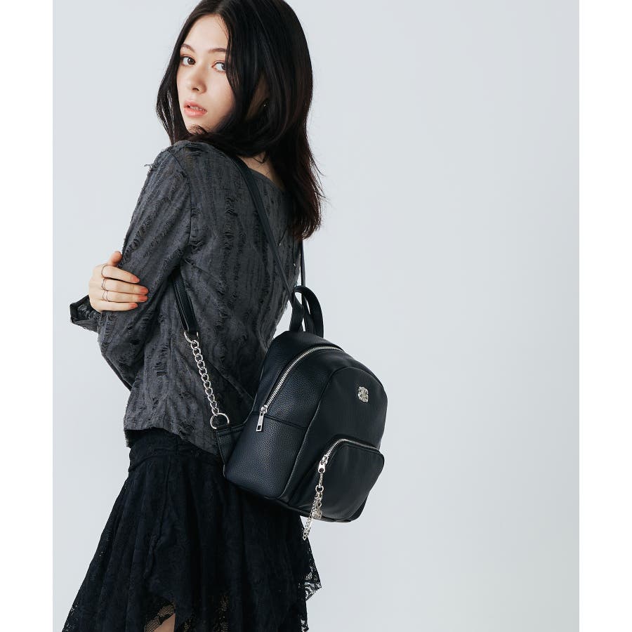シンプルながらもフロントに付いたロゴメタルやショルダーのチェーン使いなど、こだわりにこだわったデザイン。