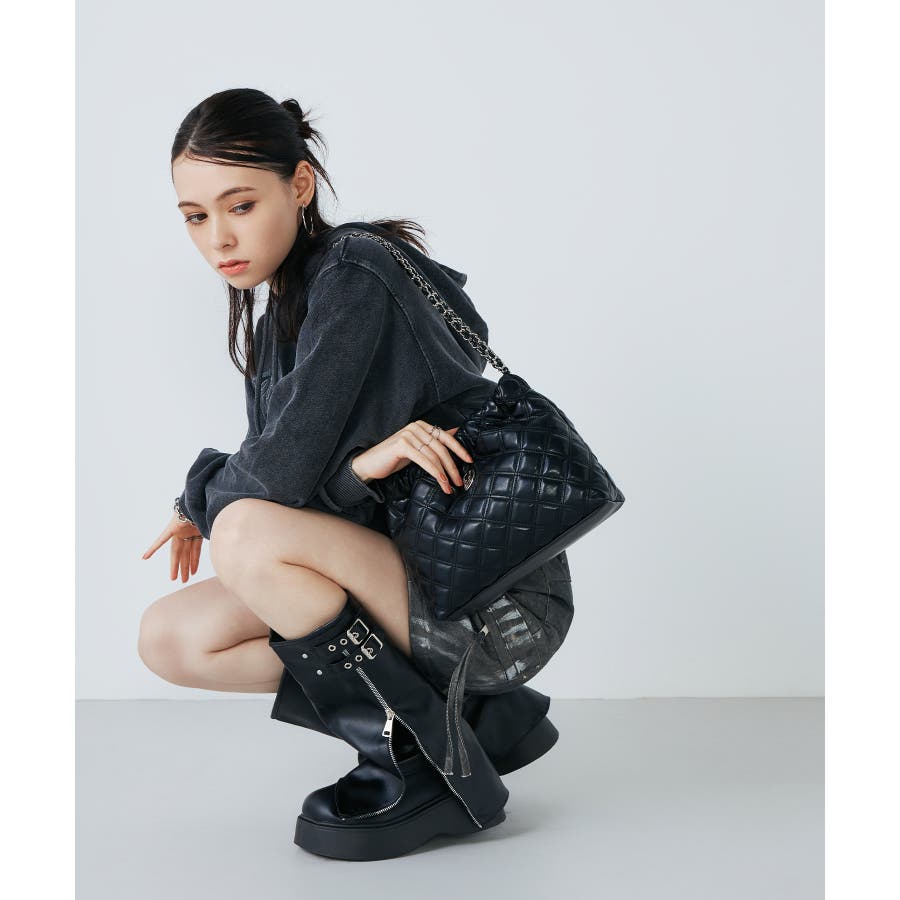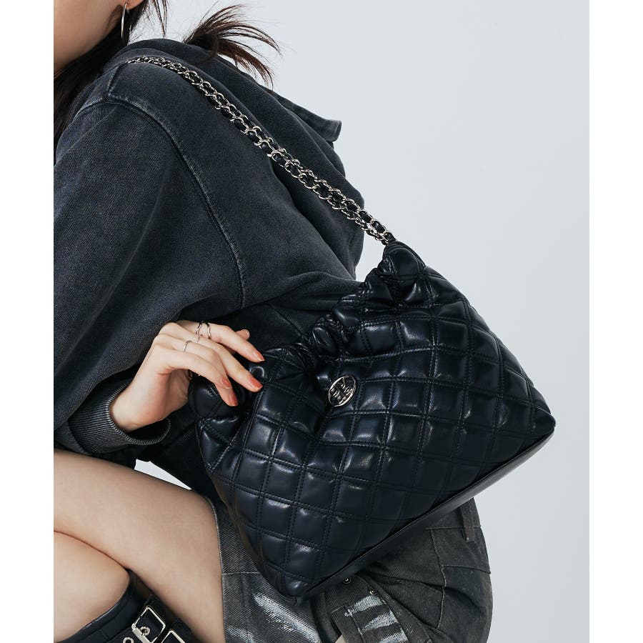 トレンドのチェーンを持ち手に使用し、全体を丸みのあるフォルムに仕上げたショルダーバッグ。