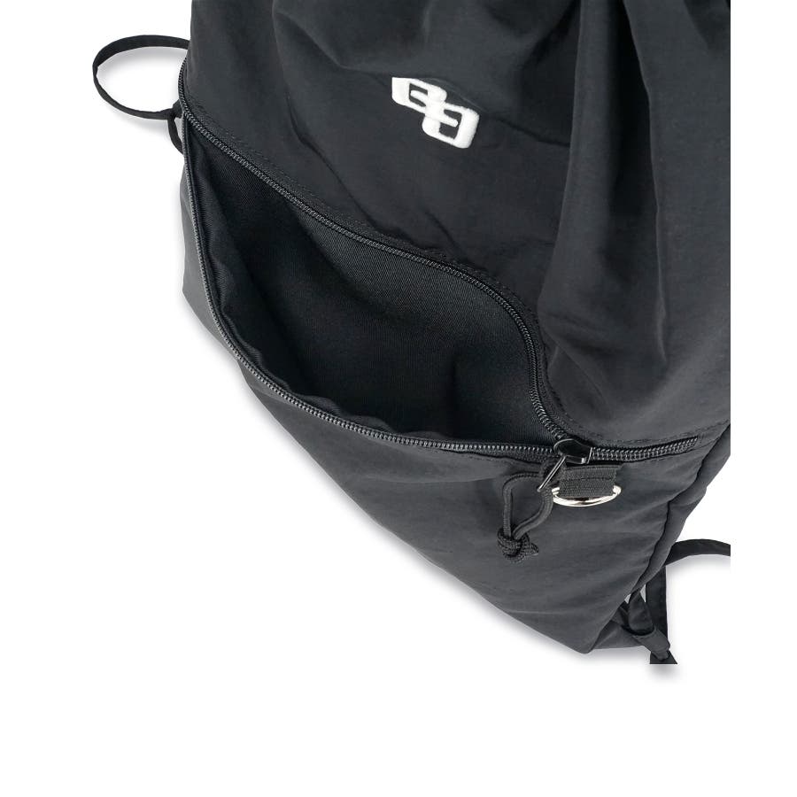 前面にはファスナーポケットを備える事でごちゃっとしがちなナップサックもすっきりとさせる事が可能に。