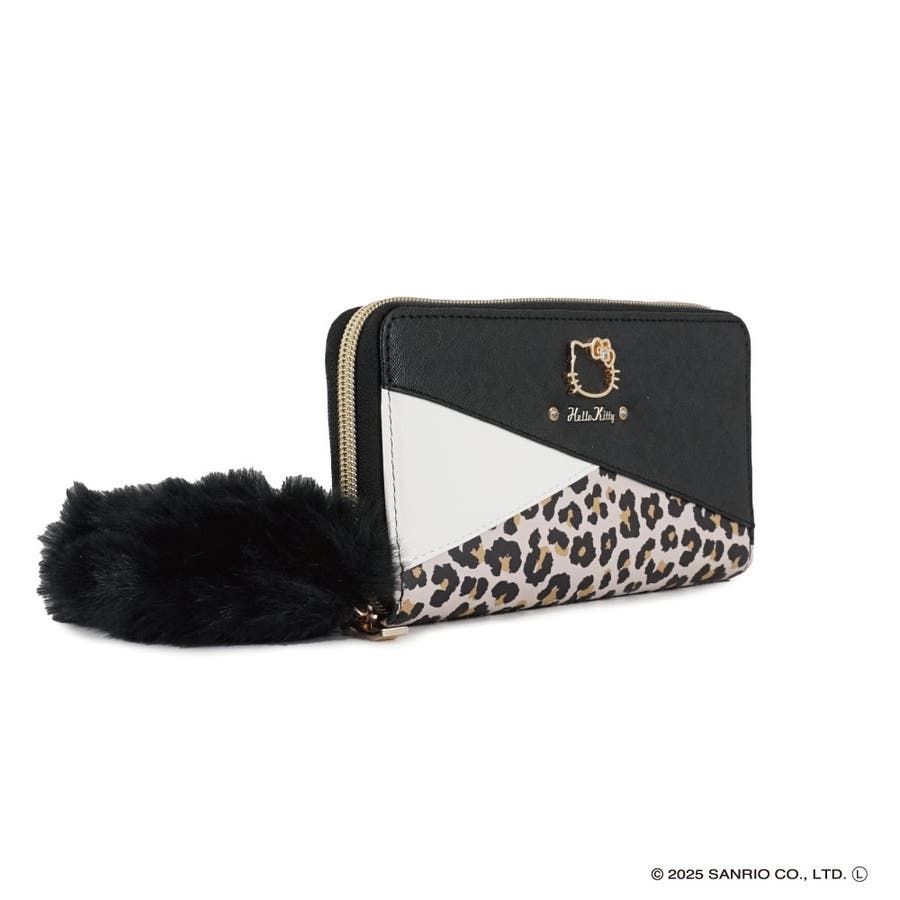 ハローキティ ラウンド束入れ ヒョウ柄スリーレザー財布シリーズ