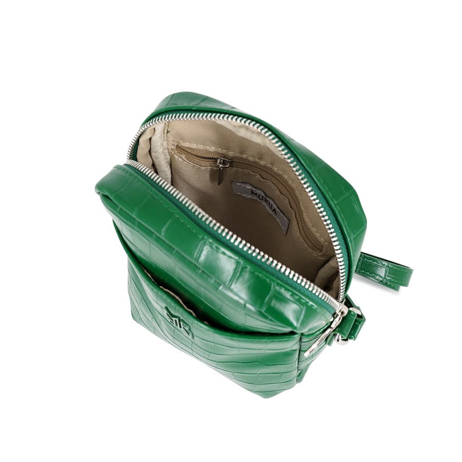 MURUAの新しいロゴ“MR”のメタルを本体と同色のカラーで付ける事でクロコの良さを邪魔せず、立体感で遊びを持たせた仕上がりに。