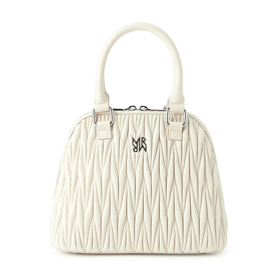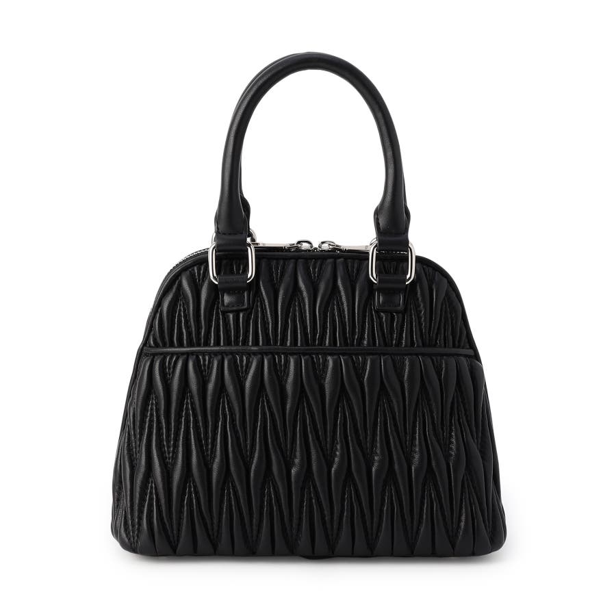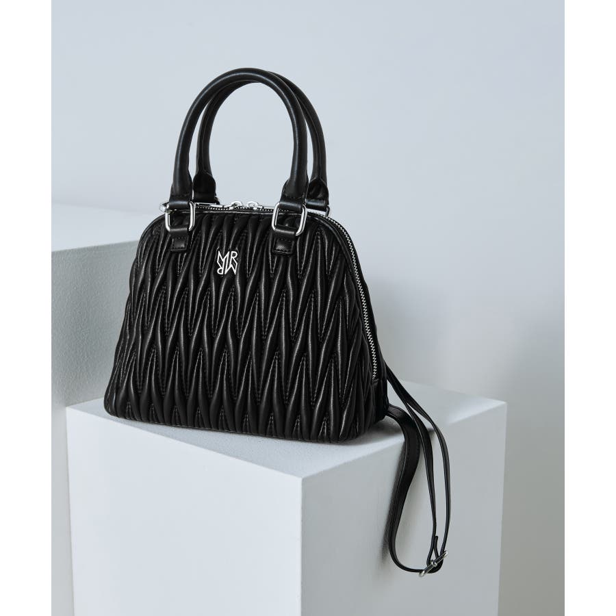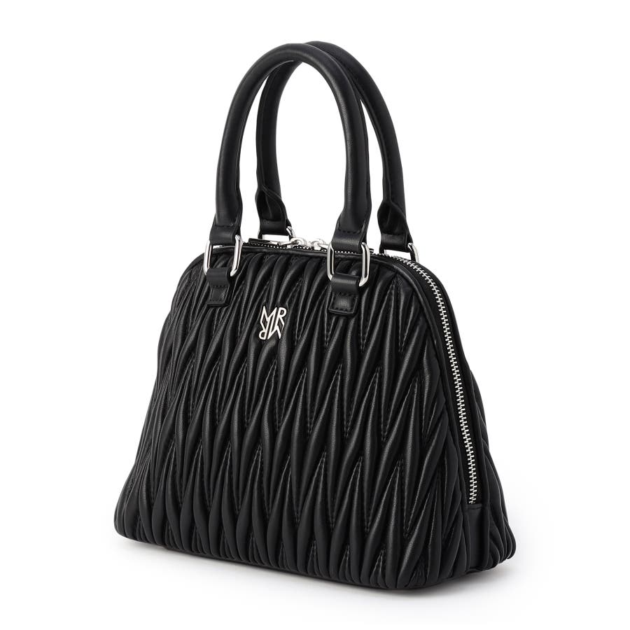 トレンド感のある台形ディテールを採用したダブルジッパーハンドバッグ。