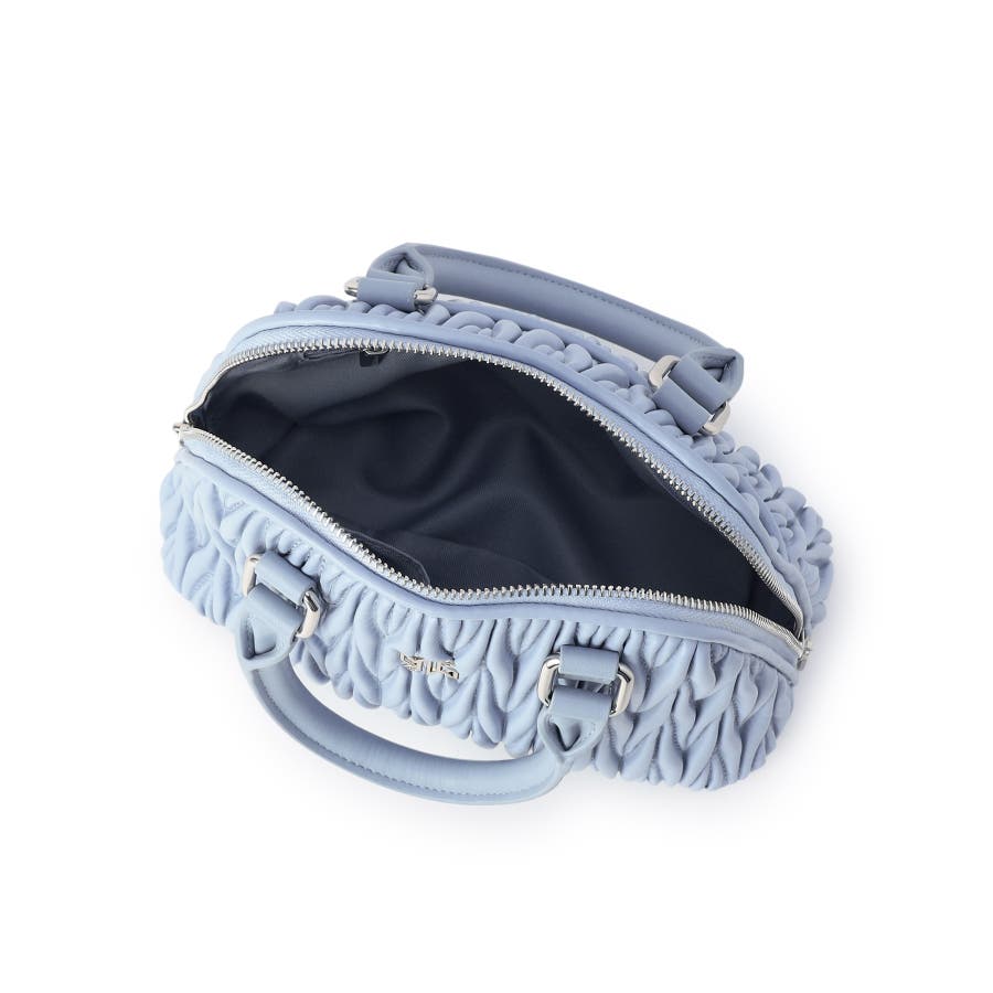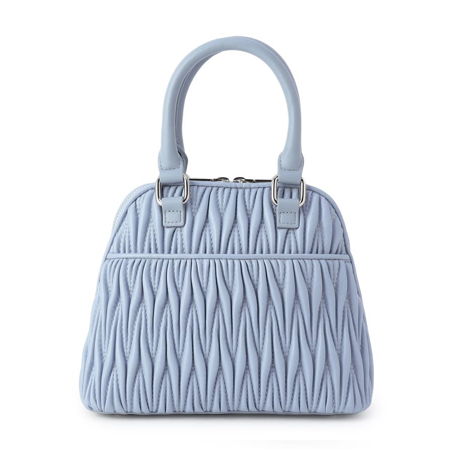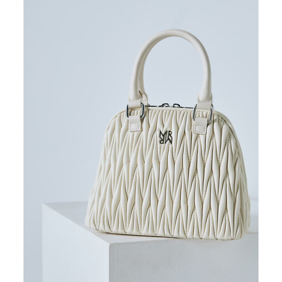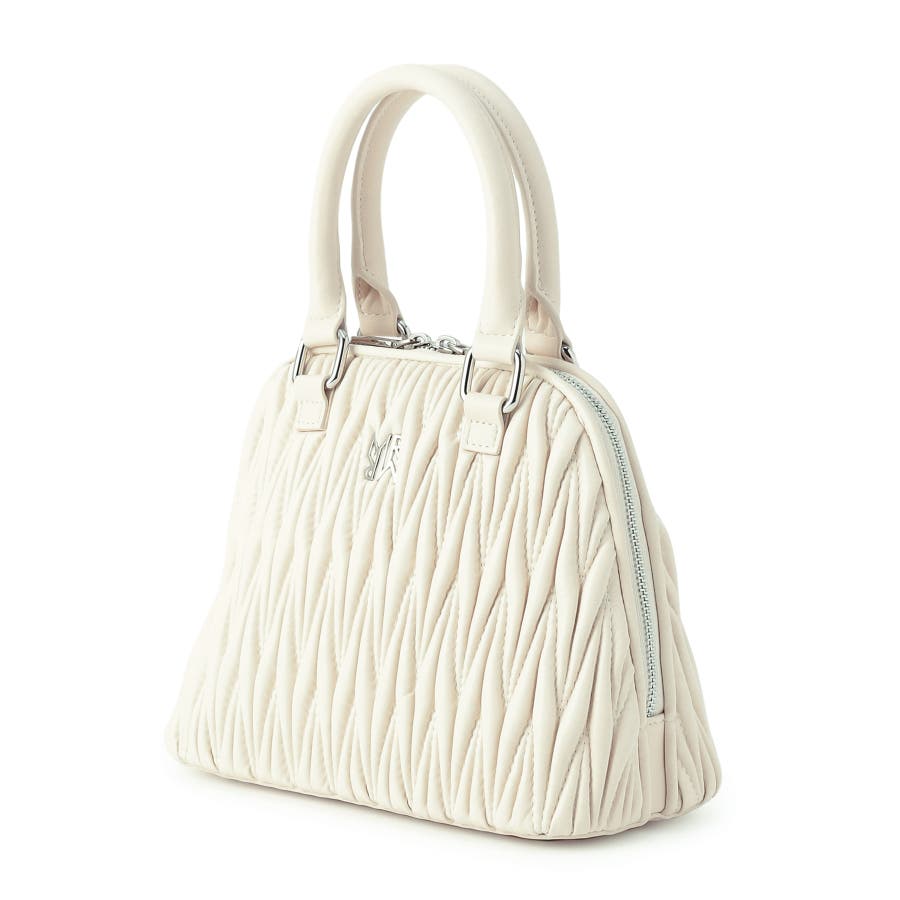 トレンド感のある台形ディテールを採用したダブルジッパーハンドバッグ。