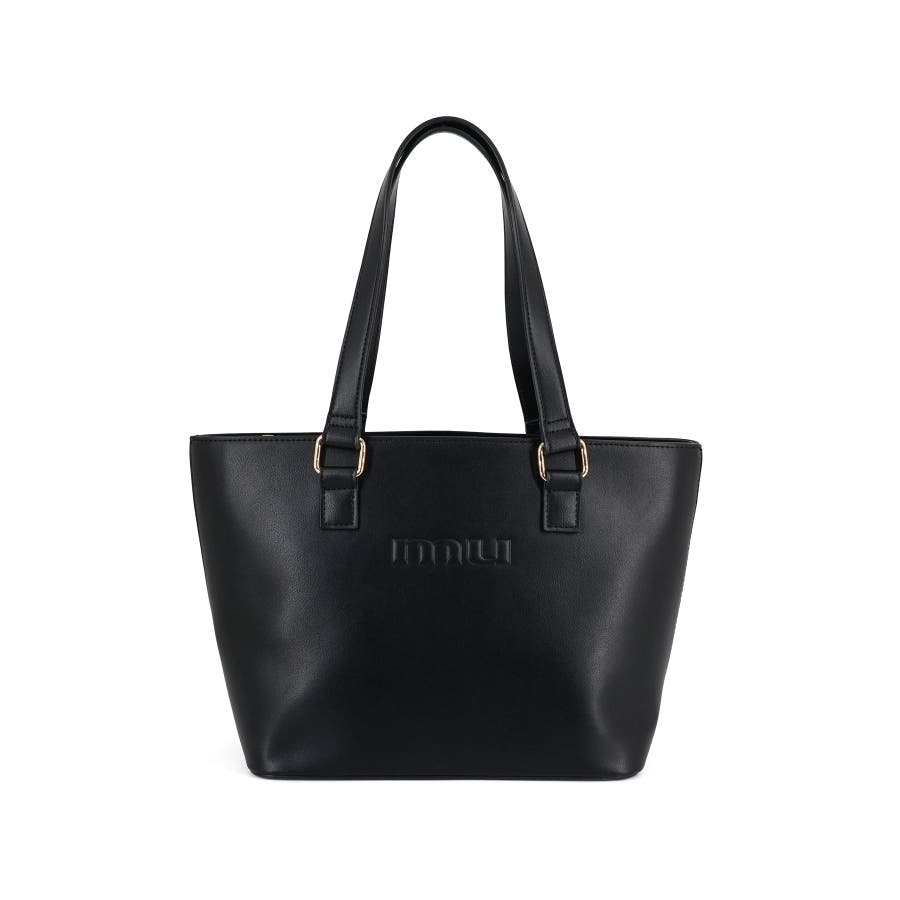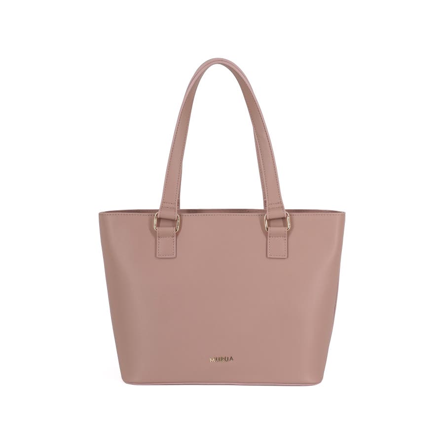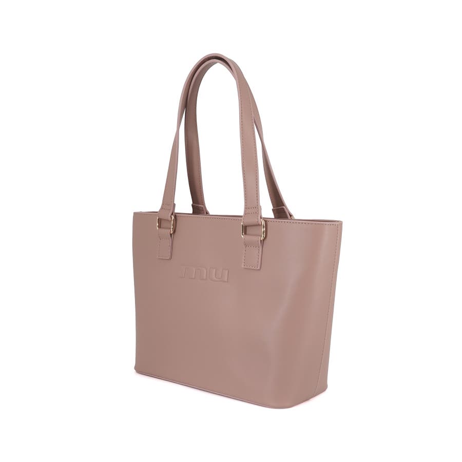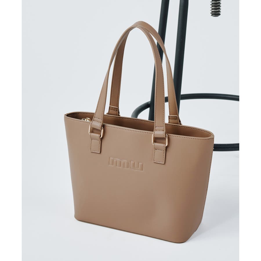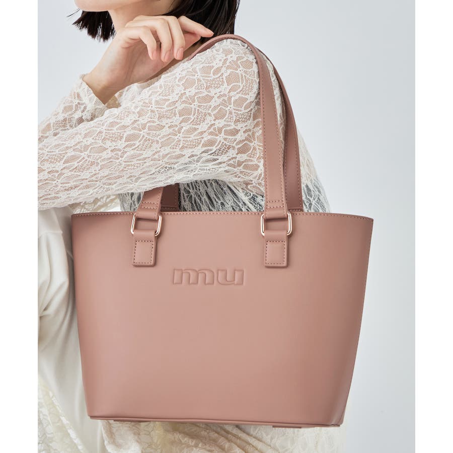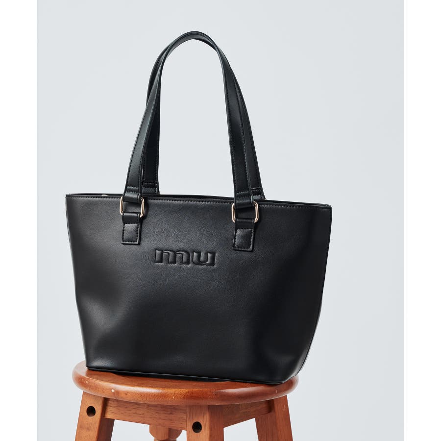 前面にmuエンボス、背面にロゴメタルを付けたリバーシブルでもお使いいただけるトートバッグ。