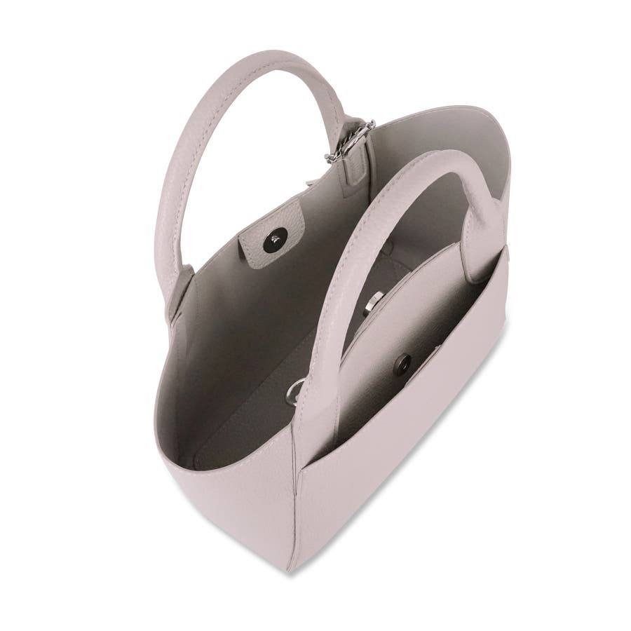 裏地をあえて取り外し、柔らかな一枚合皮を使用した2WAYハンドバッグ。一枚合皮の特徴でもあるくたっと感がこなれ感を醸し出しています。