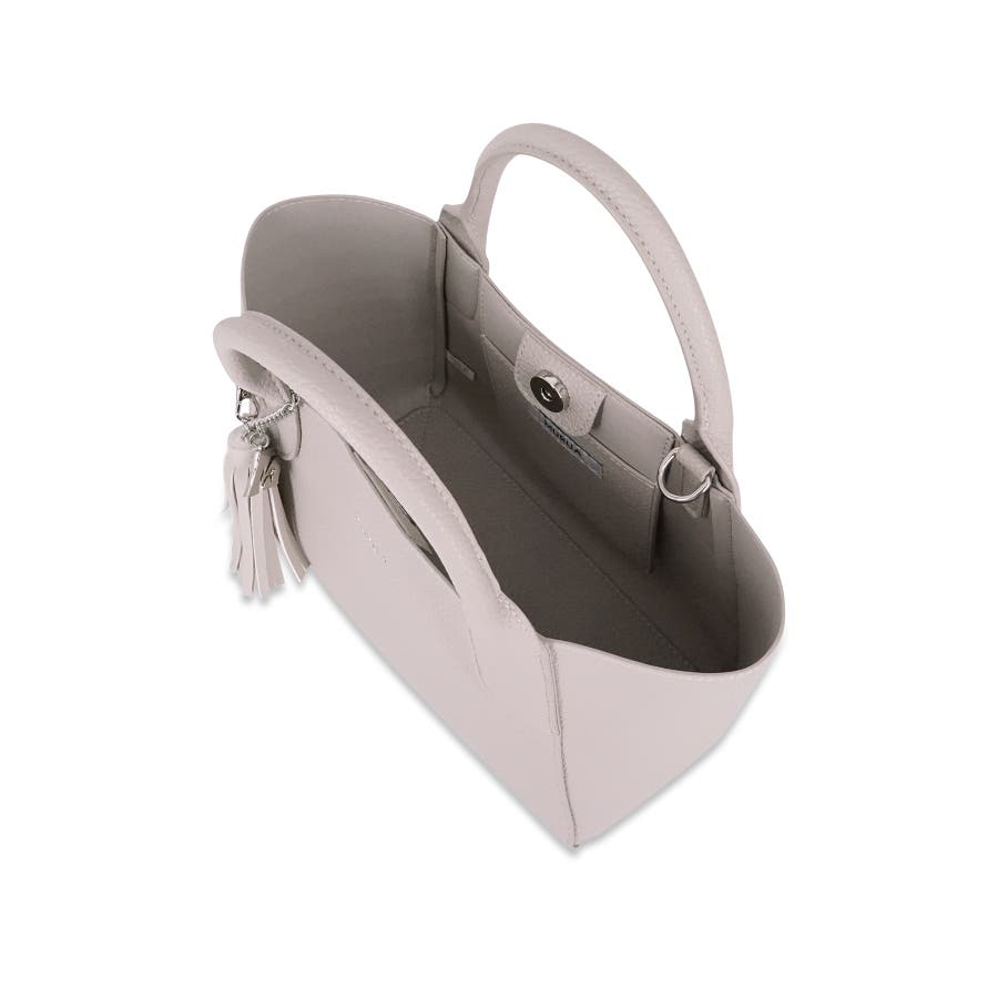 タッセル付きシルバーチャームは取り外し可能で、他の物に付けてもお使いいただく事が可能です。上品なデザインに合わせたブラック・ライトグレー・ネイビーの3色展開。