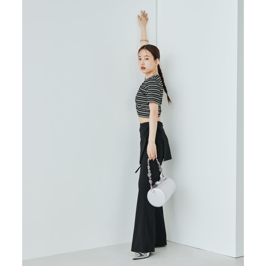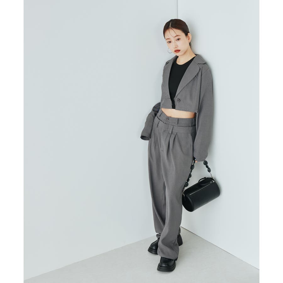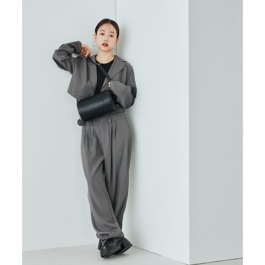 ブラックを基調としたクールなマスキュリンスタイル。メリハリの効いたスタイルシルエットを軸に女性らしいフェミニンさをプラスし独自のムードを作り出す