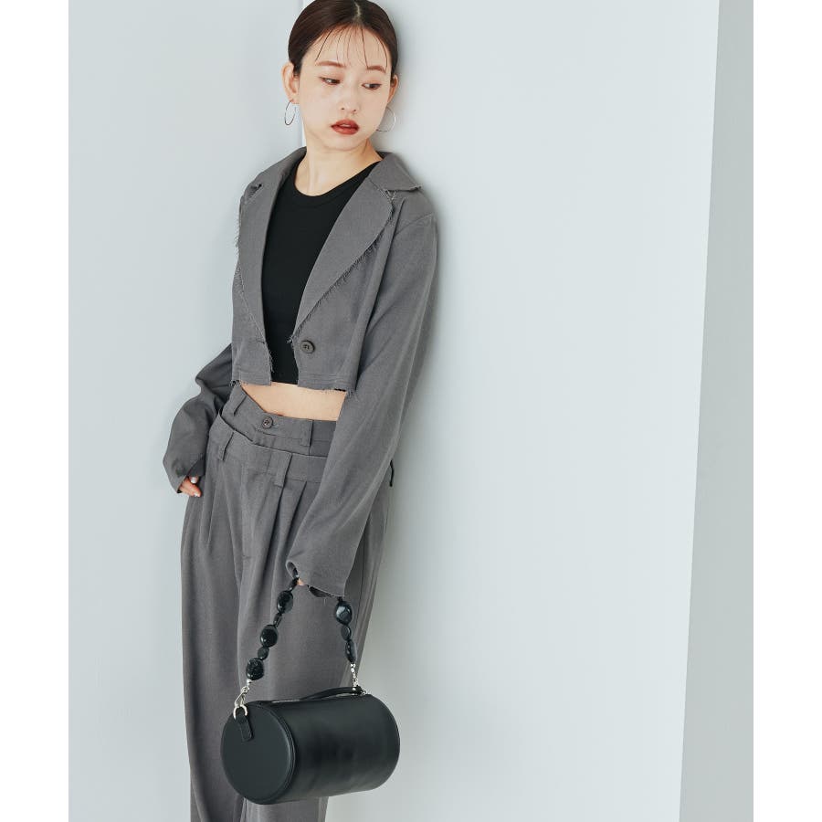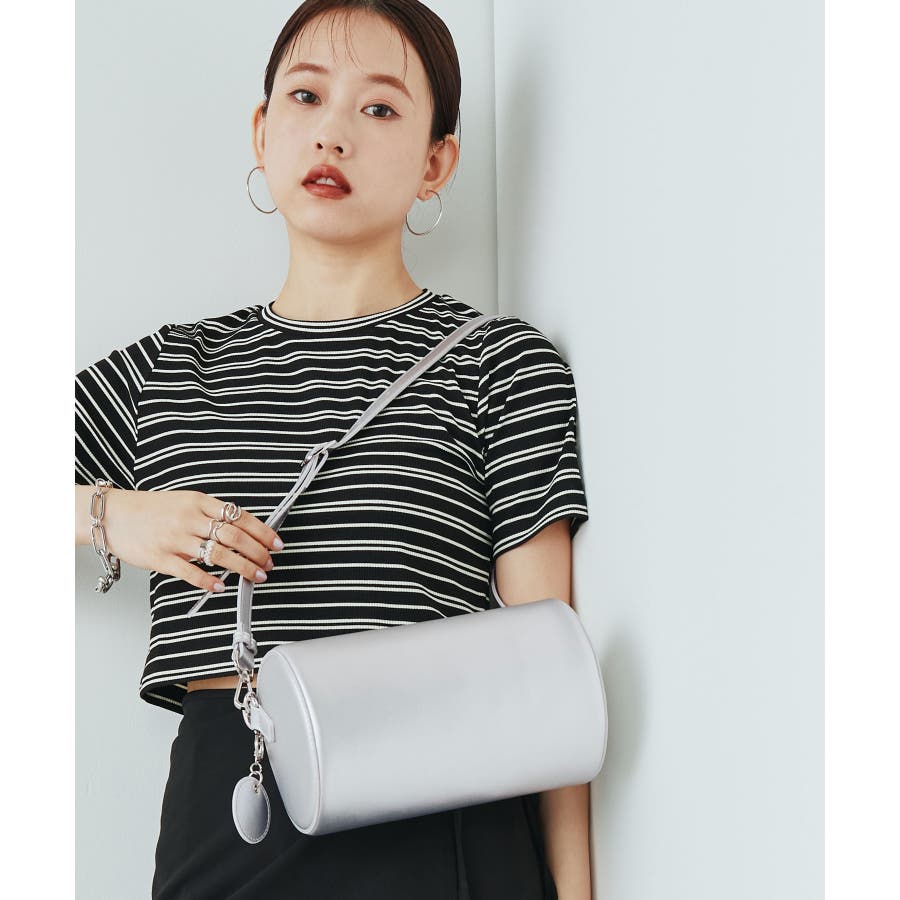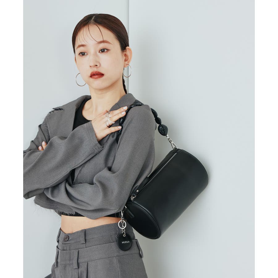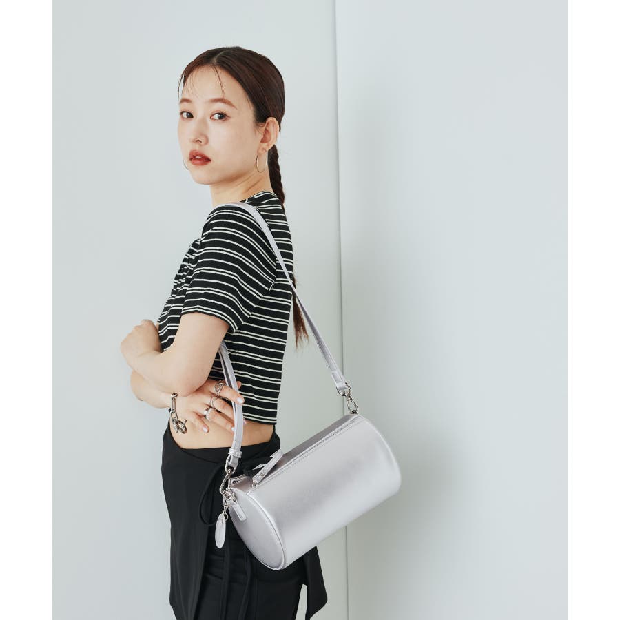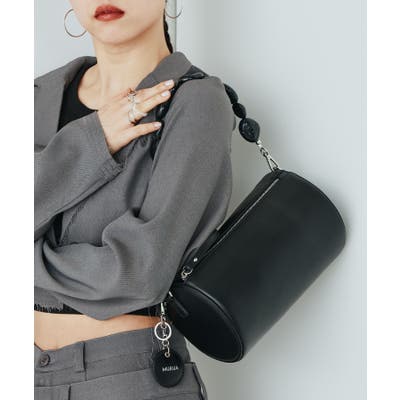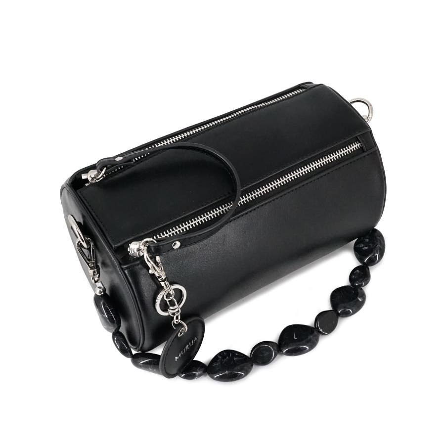 オーソドックスなフェイクレザーのショルダーを付けてストーンショルダーをそのまま垂らしても可愛いデザイン。シリンダーバッグの弱点でもある荷物の取り出しにくさはダブルファスナーにする事で開けやすく、荷物が取り出しやすい仕様に。