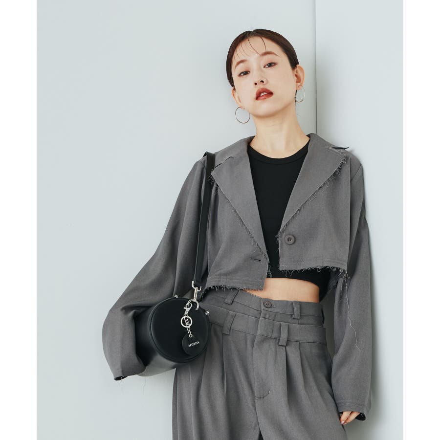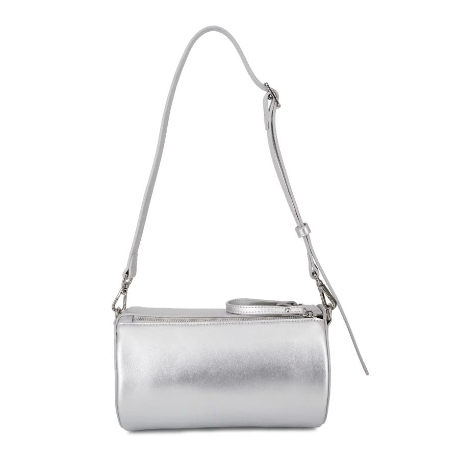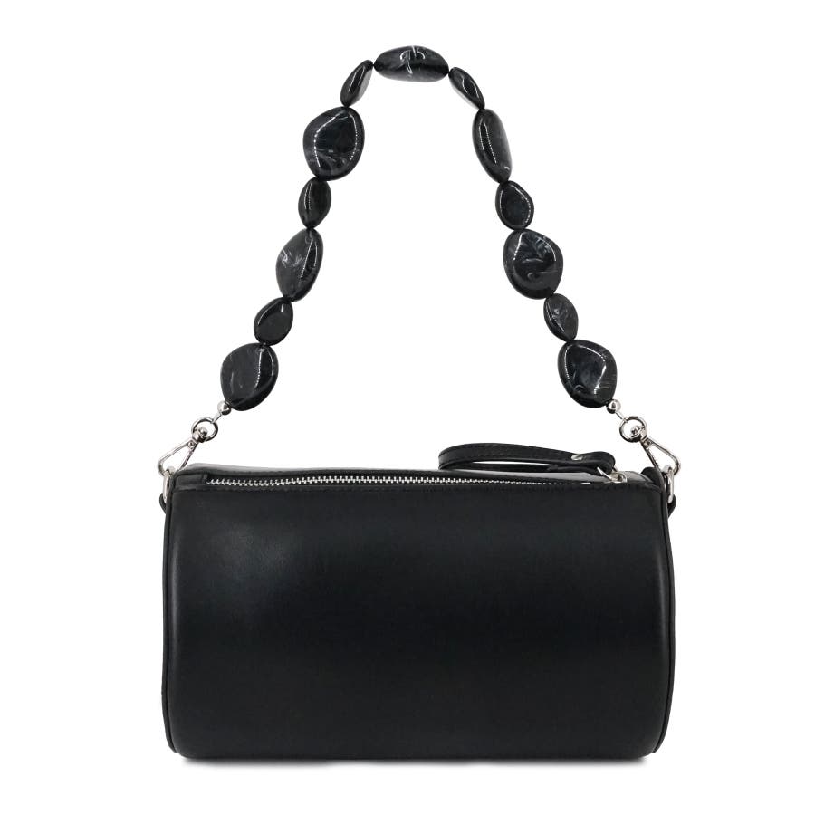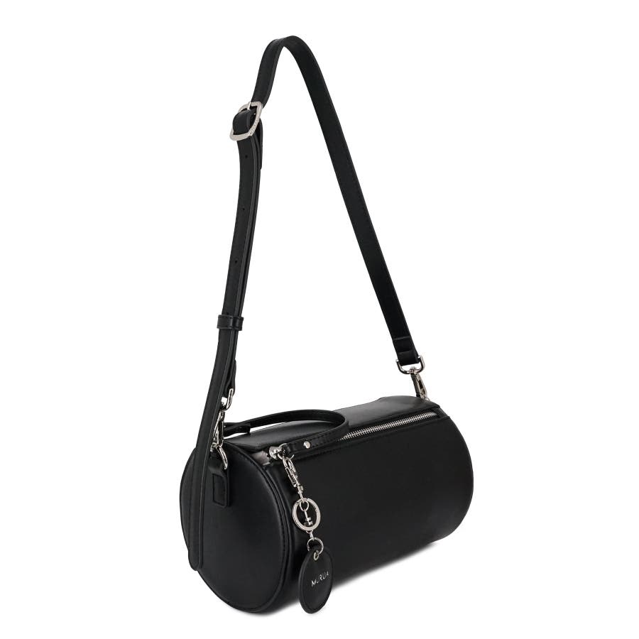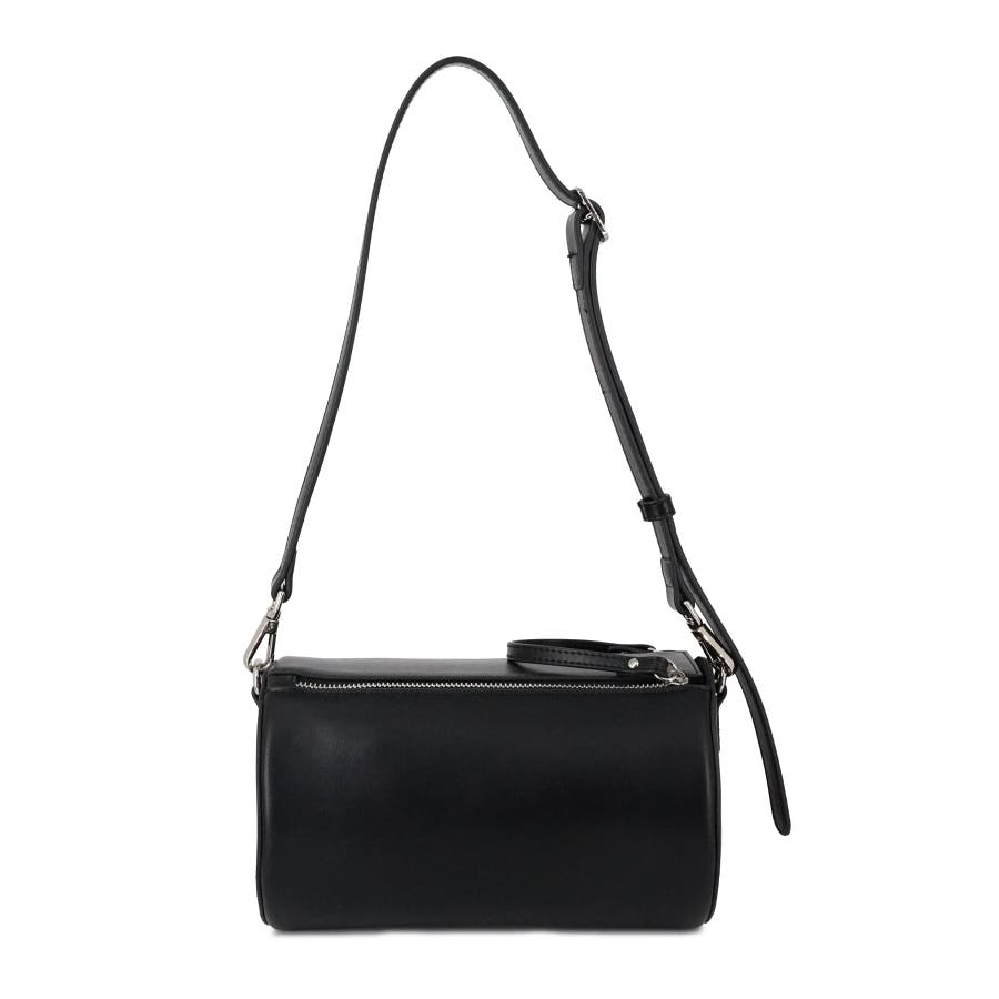 オーソドックスなフェイクレザーのショルダーを付けてストーンショルダーをそのまま垂らしても可愛いデザイン。シリンダーバッグの弱点でもある荷物の取り出しにくさはダブルファスナーにする事で開けやすく、荷物が取り出しやすい仕様に。