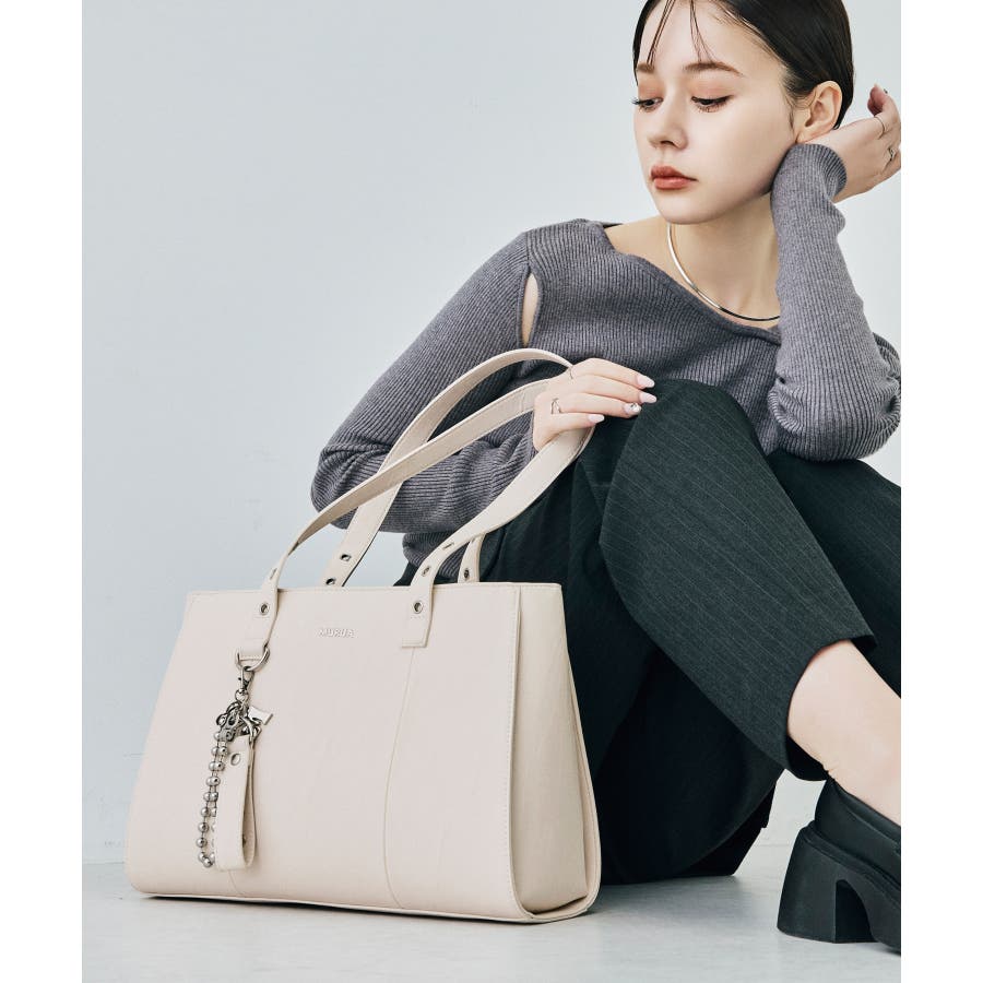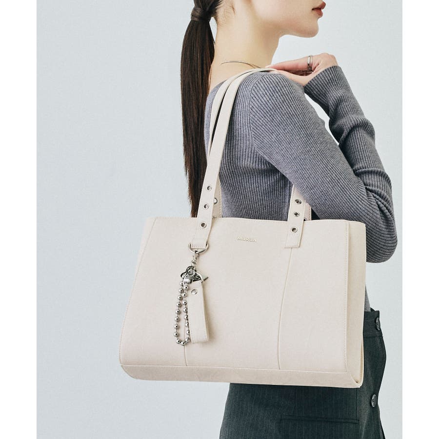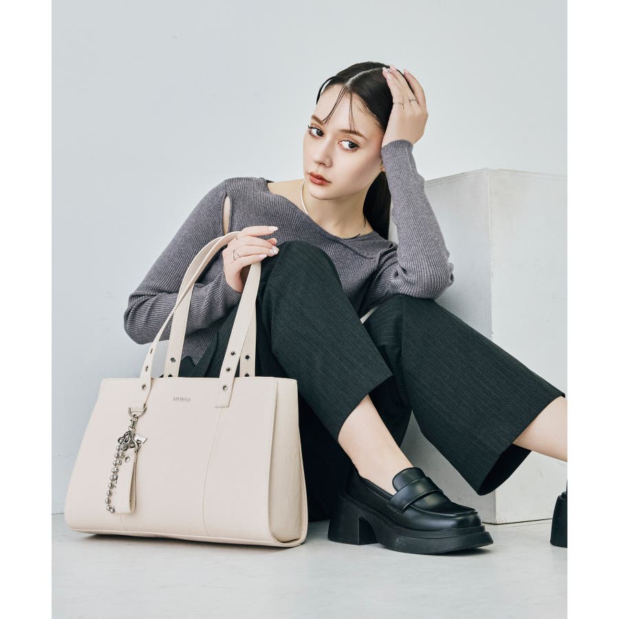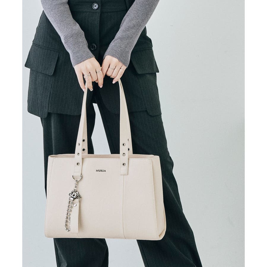 かっちりとしたデザインも持ち手のハトメ・付属のベルトチャームで遊び心をプラスしました。