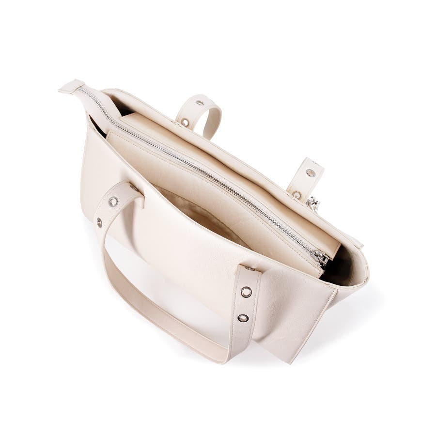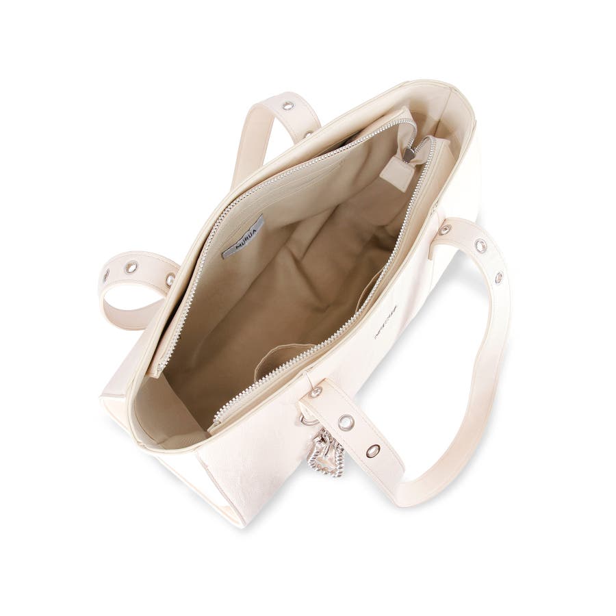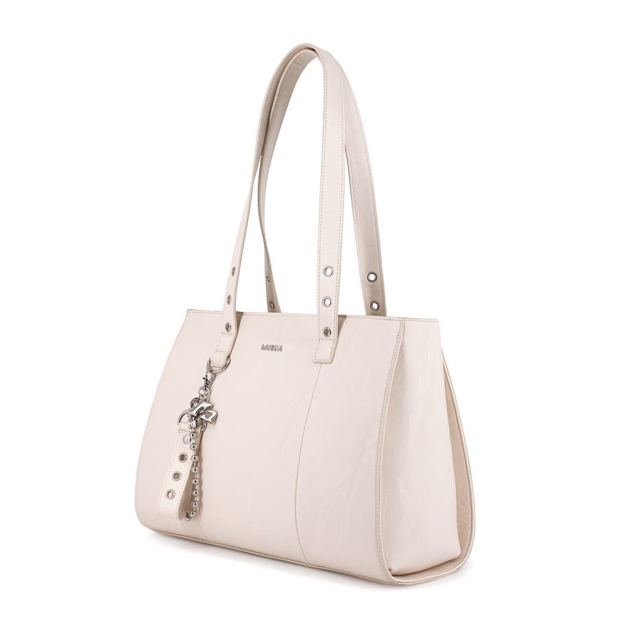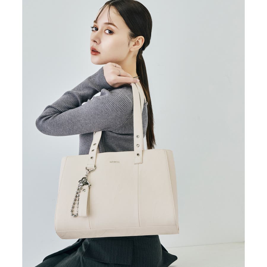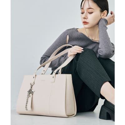 かっちりとしたデザインも持ち手のハトメ・付属のベルトチャームで遊び心をプラスしました。