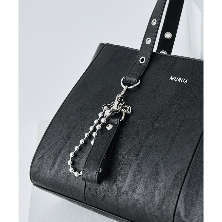 ボールチェーンとハトメが印象的なベルトチャームはMURUAらしいエッジの効いたデザインです。