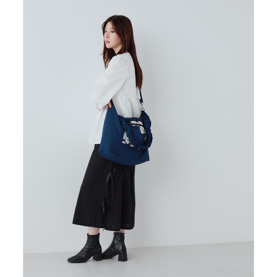 ギャザーやロゴテープを使用したショルダーなど、随所に女性らしさを感じるアイテムに