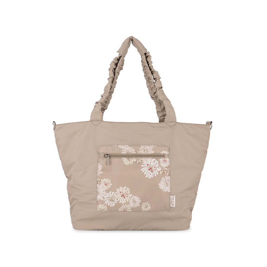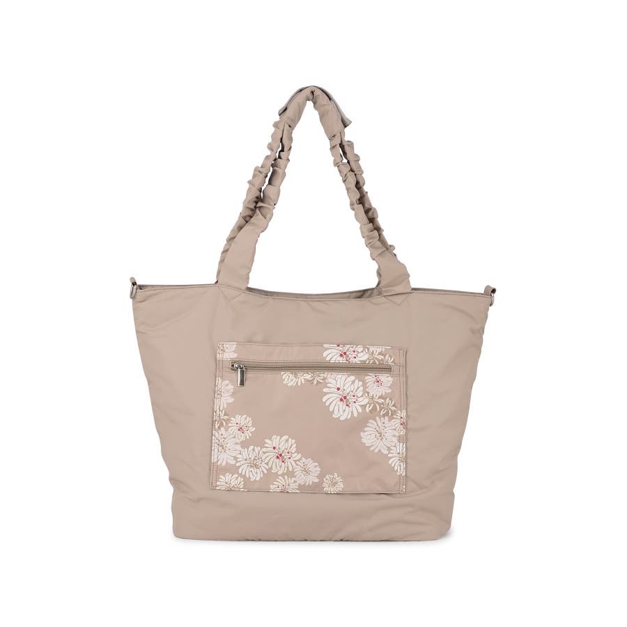 ギャザー持ち手がデザインのアクセントになったトラベルトート。