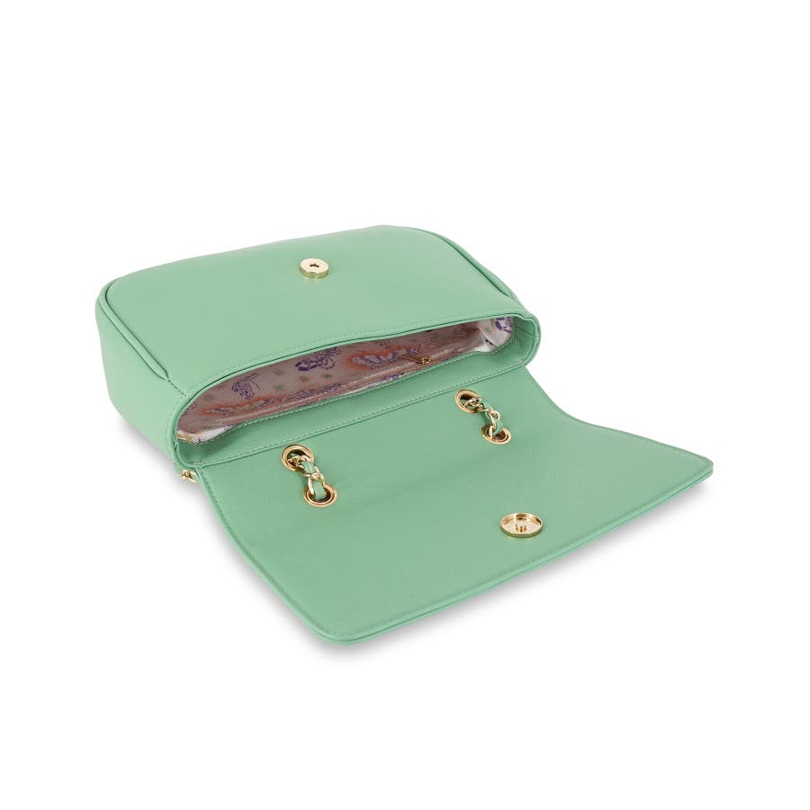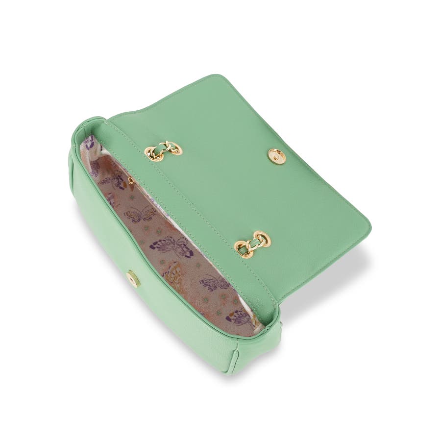 ショルダー部分にはチェーンを使用し、アクセサリーを身に着けるような感覚でお持ちいただく事が可能です。
