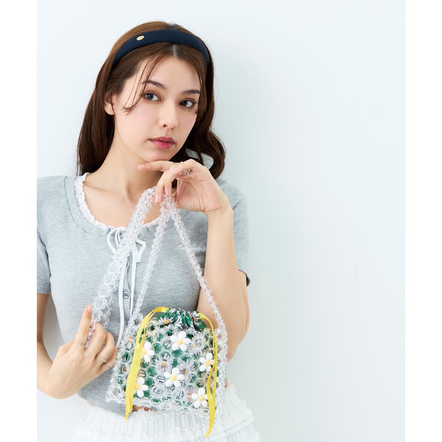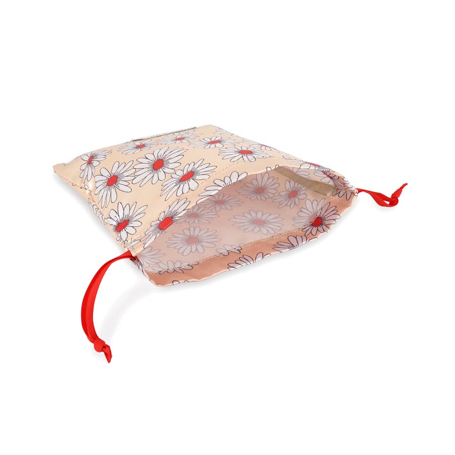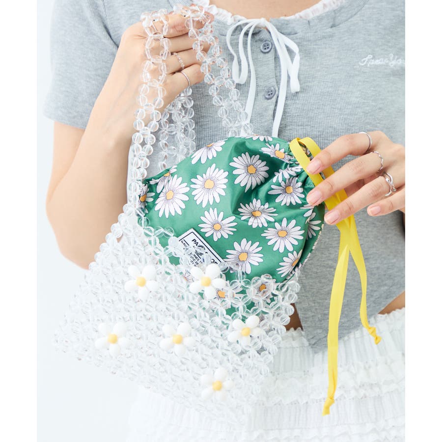 オリジナルのデイジー総柄を使用した付属の巾着はキャッチーながらもシンプルさのあるビーズバッグに入れるとまた違った雰囲気をお楽しみいただけます。