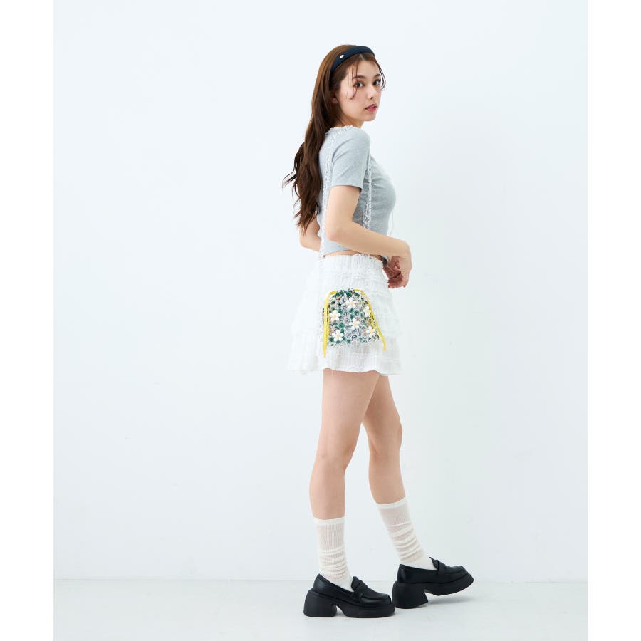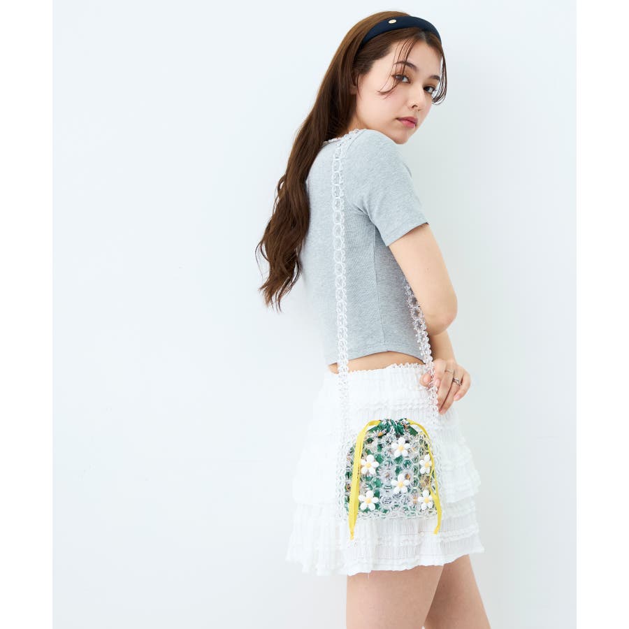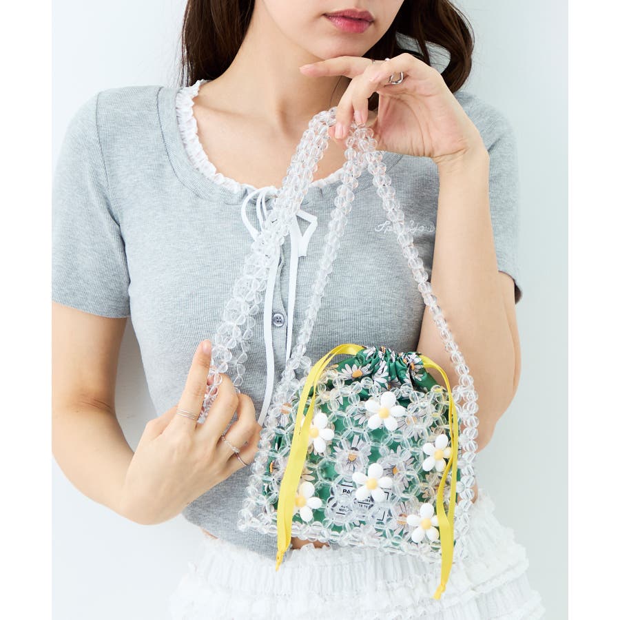 ショルダーにまでビーズを使用する事で統一感を持たせ、シンプルなコーディネートの時の外しアイテムとしてもおすすめ。