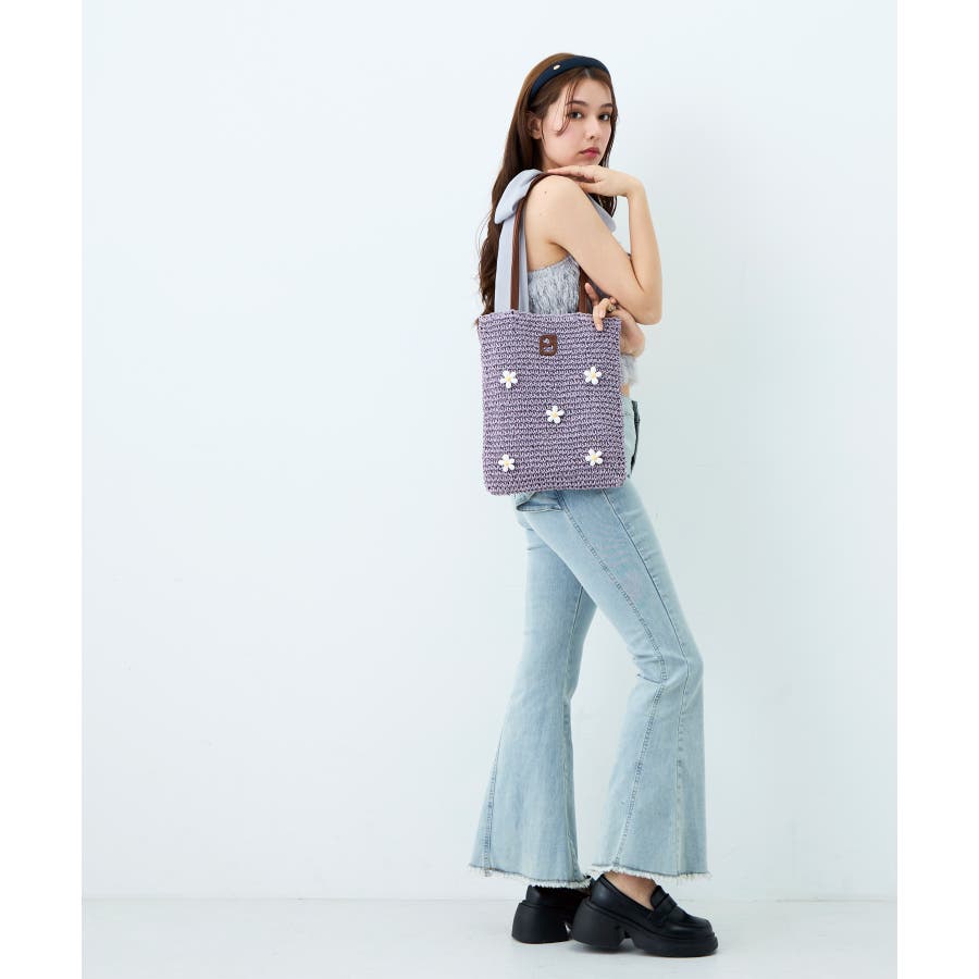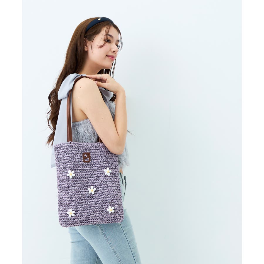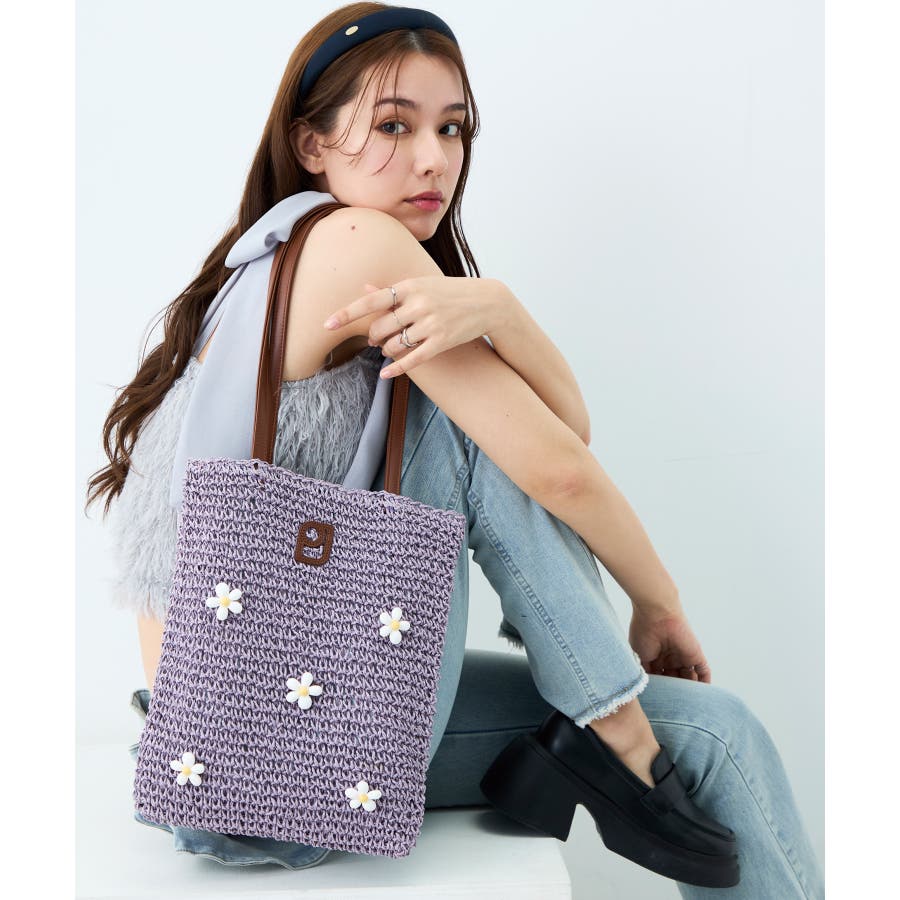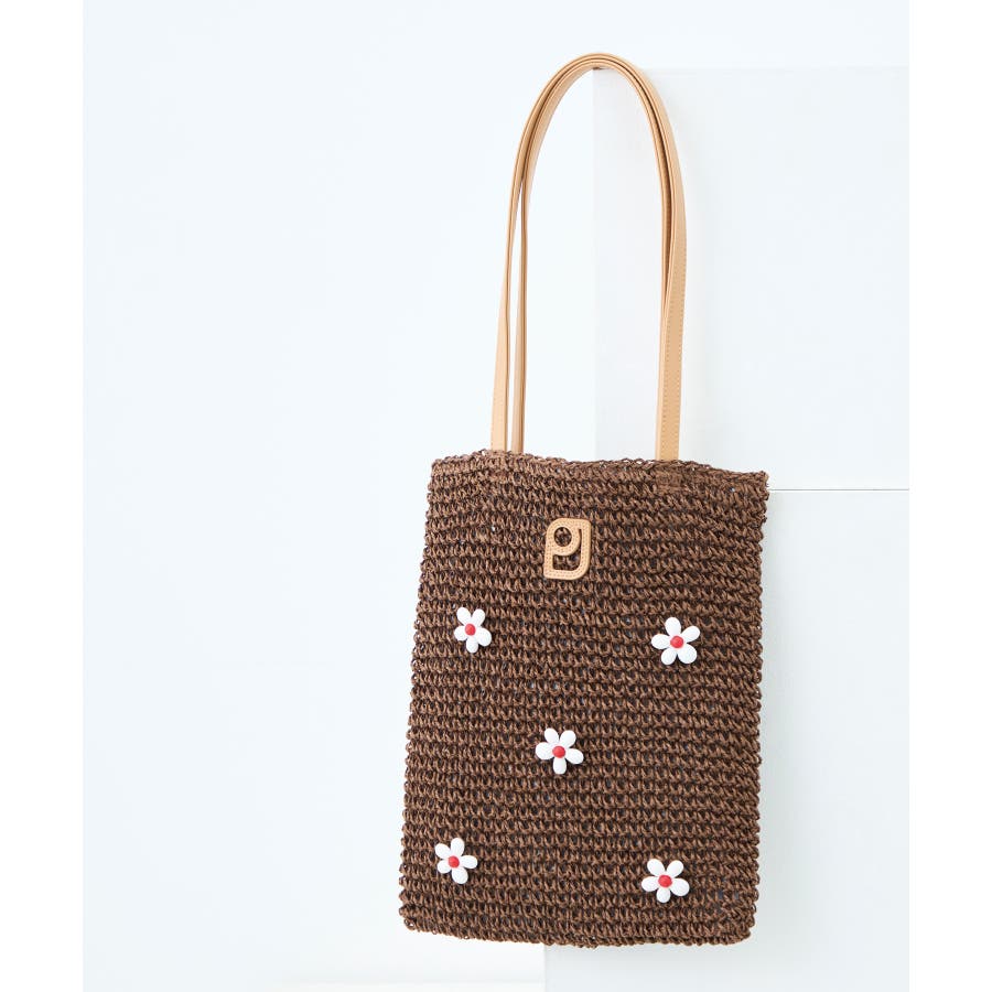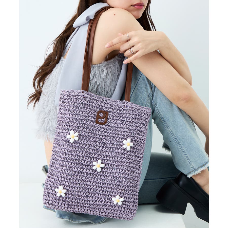 本体にはペーパー素材を使用し、一点一点手編みで編まれたかごバッグをベースにお花のビーズパーツを掛け合わせました。