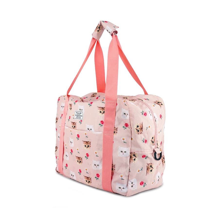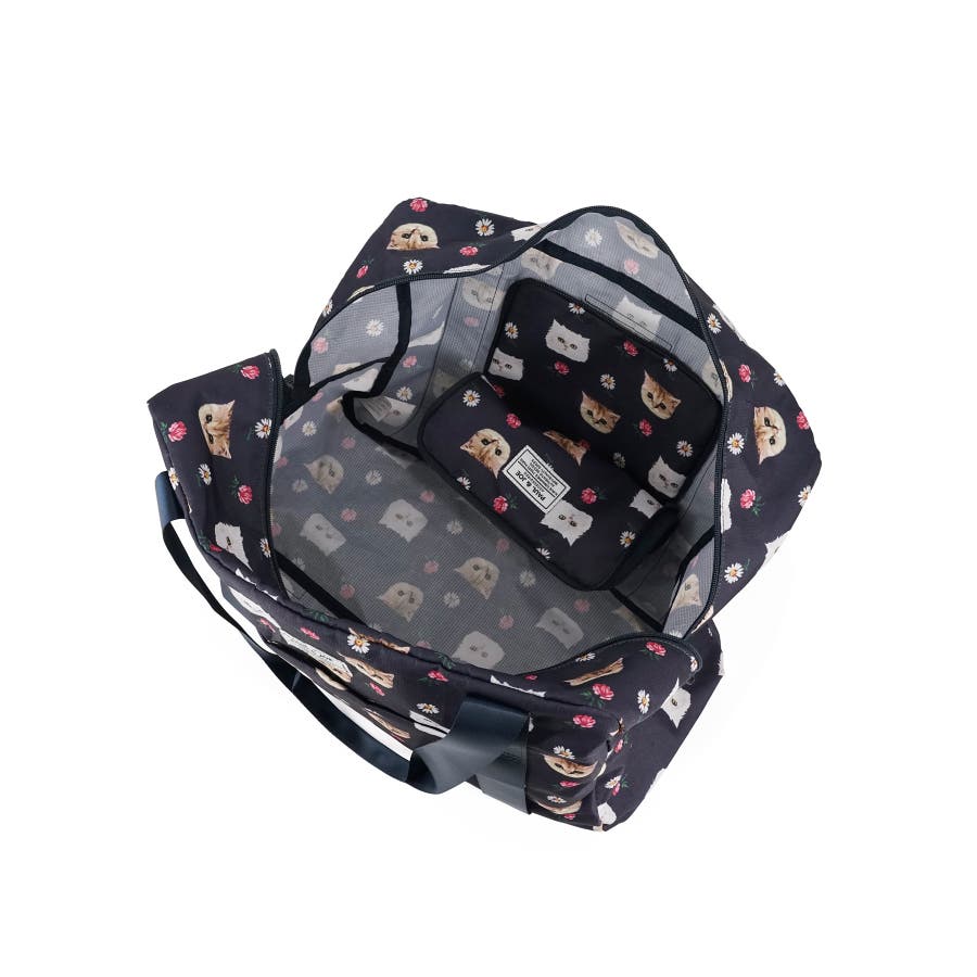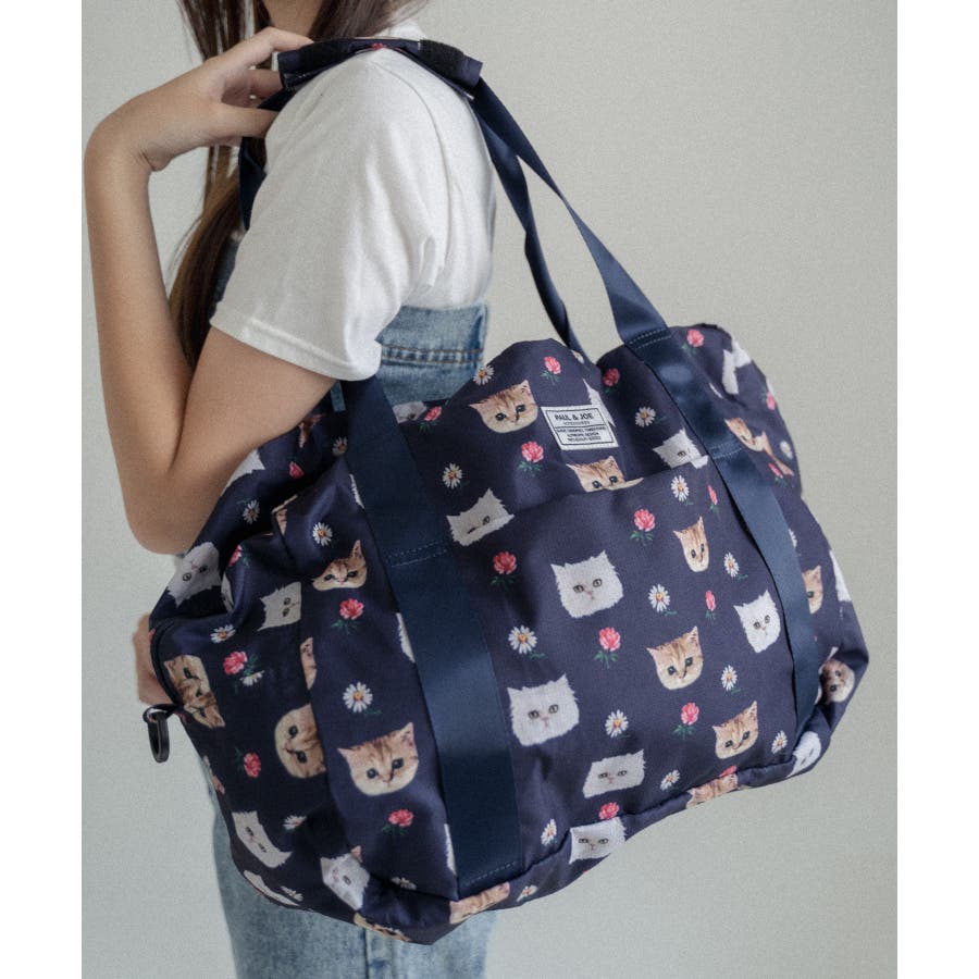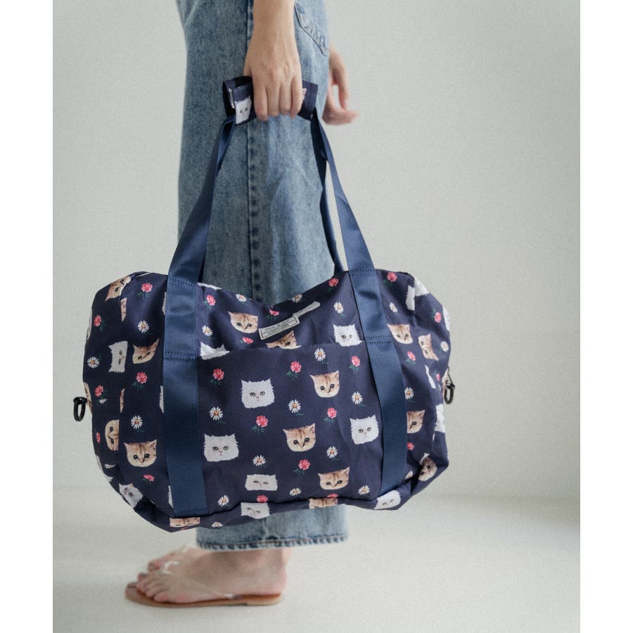 デザイナーのソフィの愛猫であり、ブランドアイコンにもなっている“ヌネット”と“ジプシー”を総柄にした折りたたみボストンバッグ。