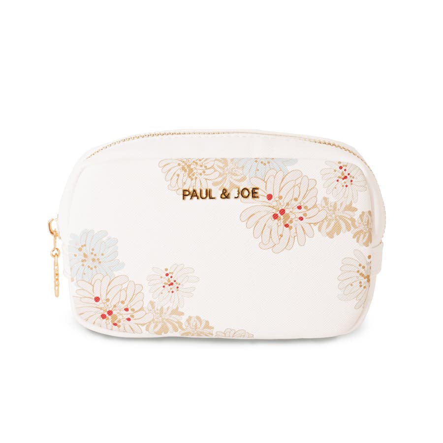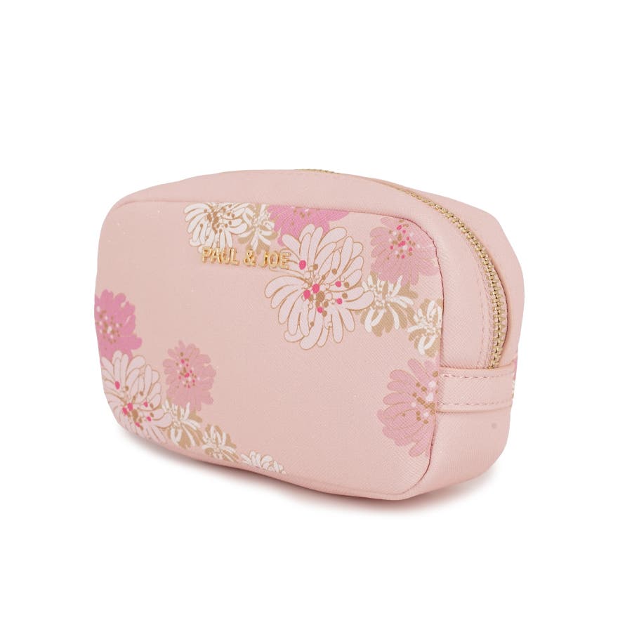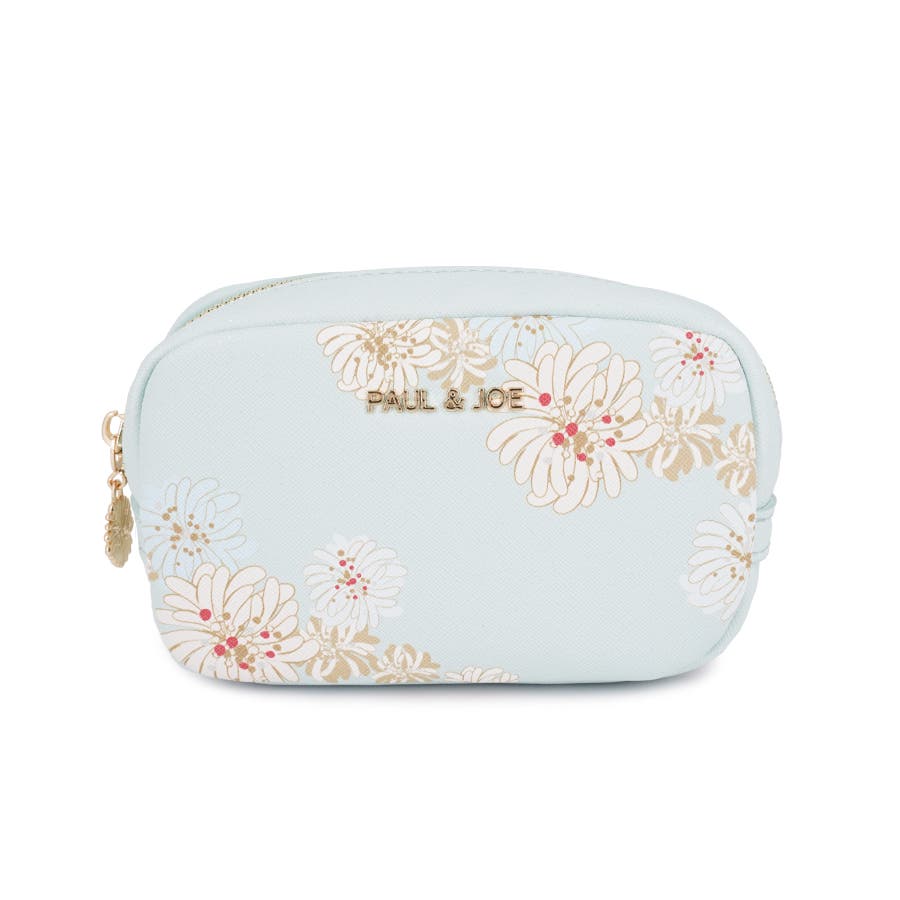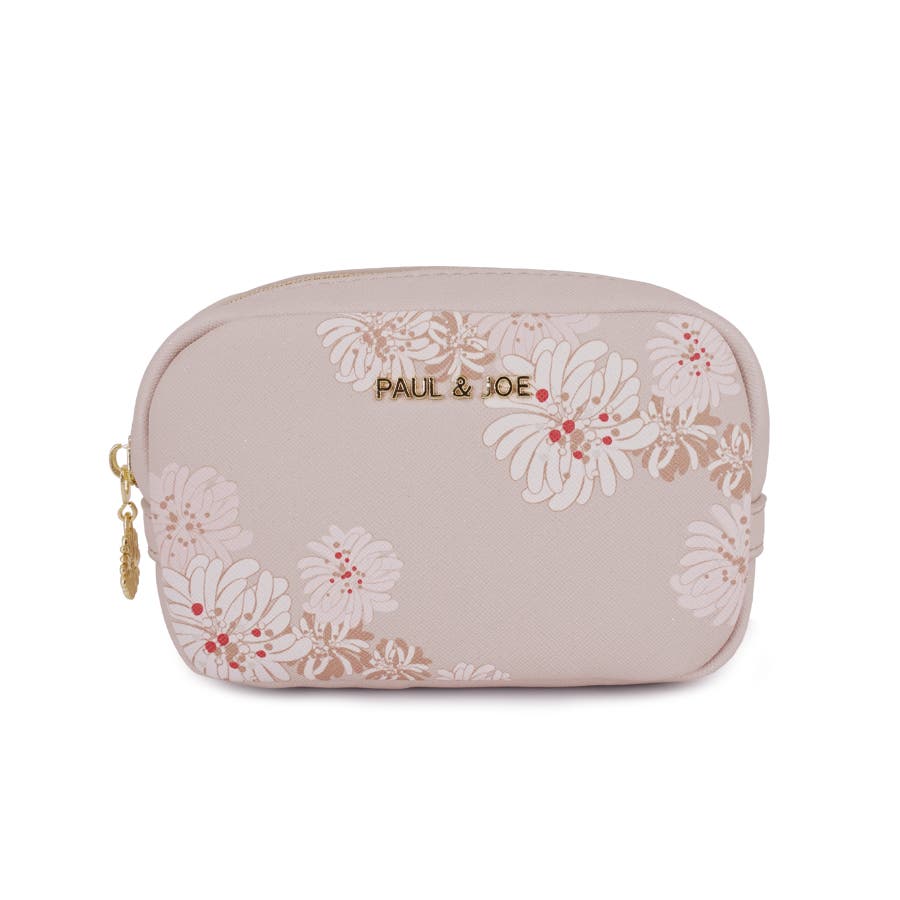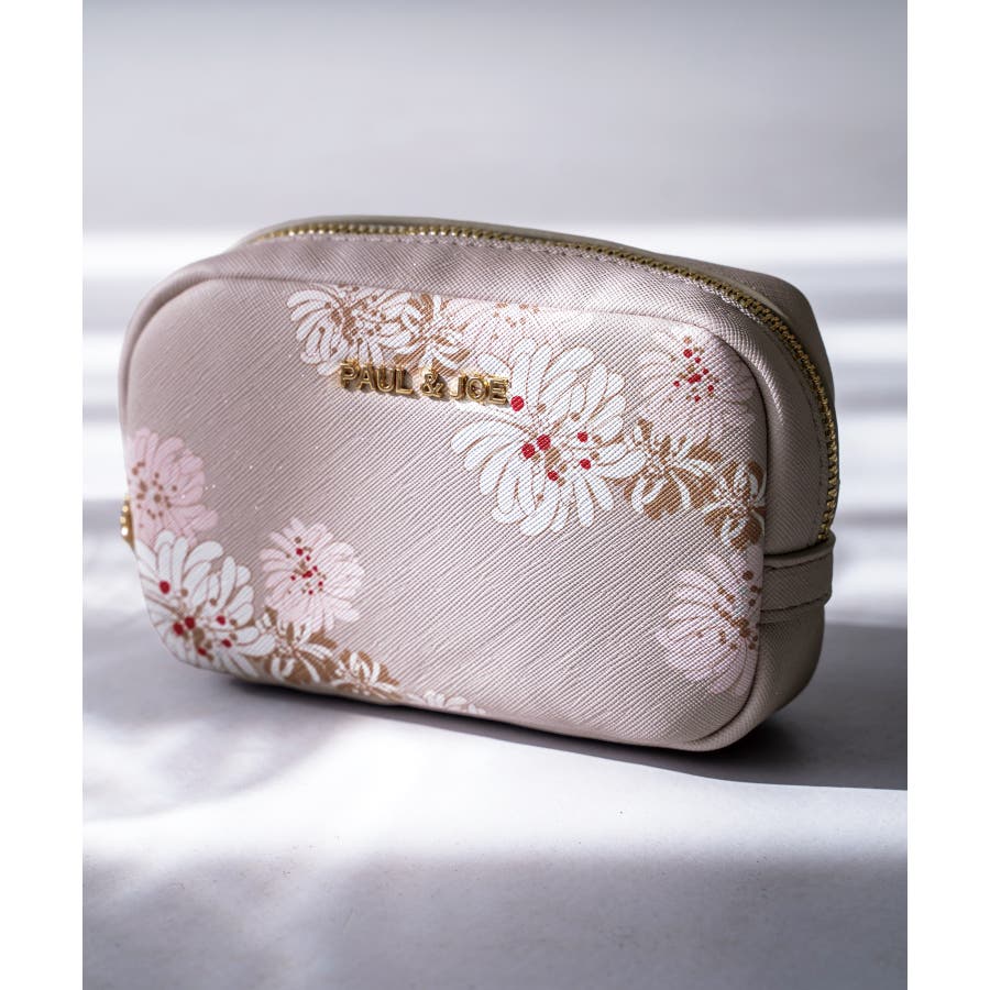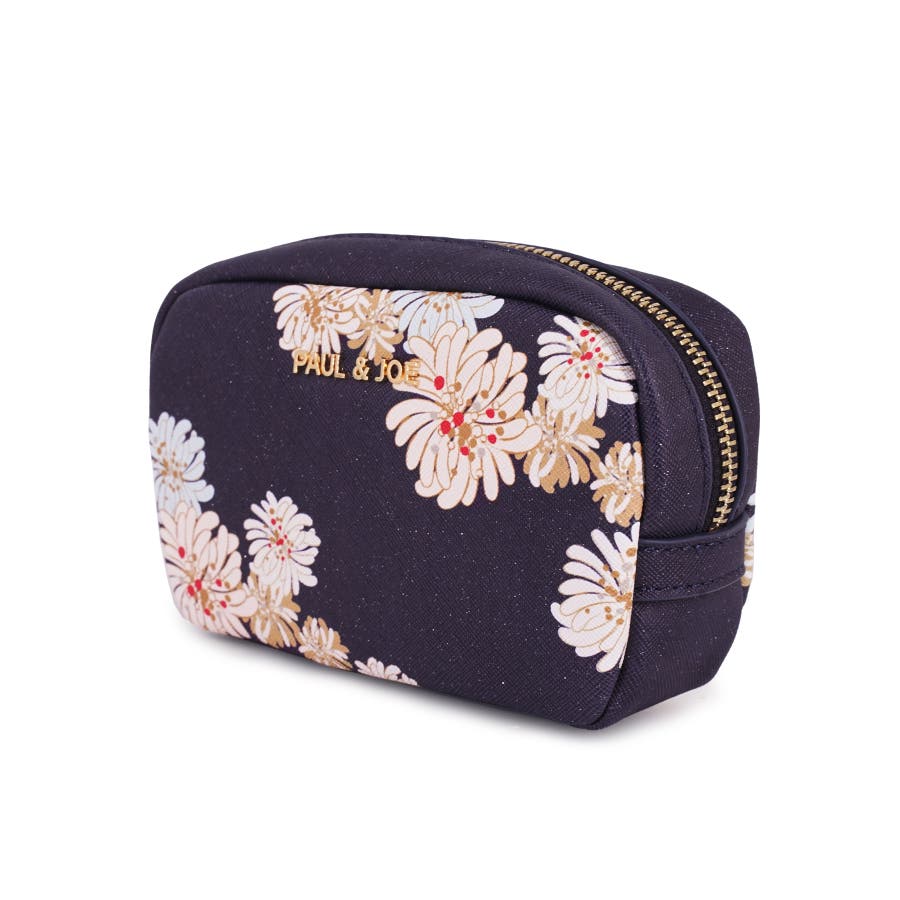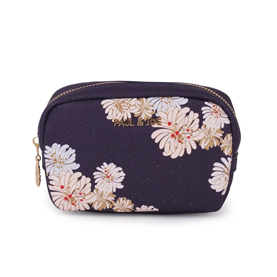 普段のメイク用品の持ち運びを可愛く。PAUL&JOEで人気のクリザンテームにラメを散りばめ、使い勝手を考えスクエアディテールに仕上げたマルチポーチ。