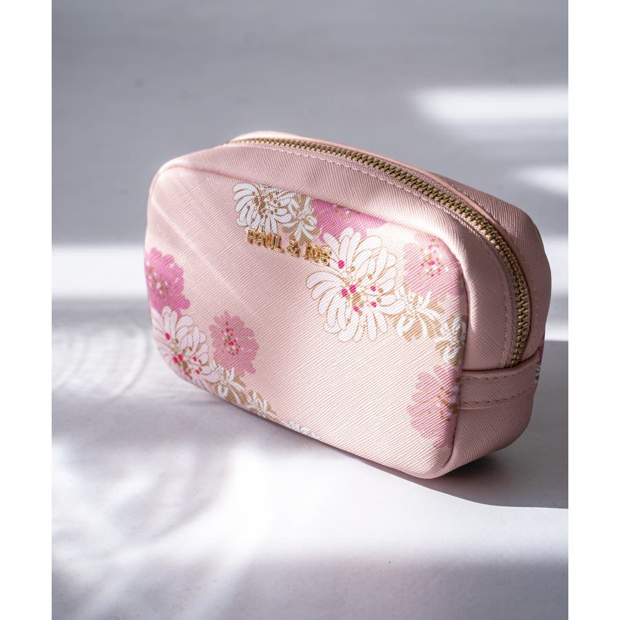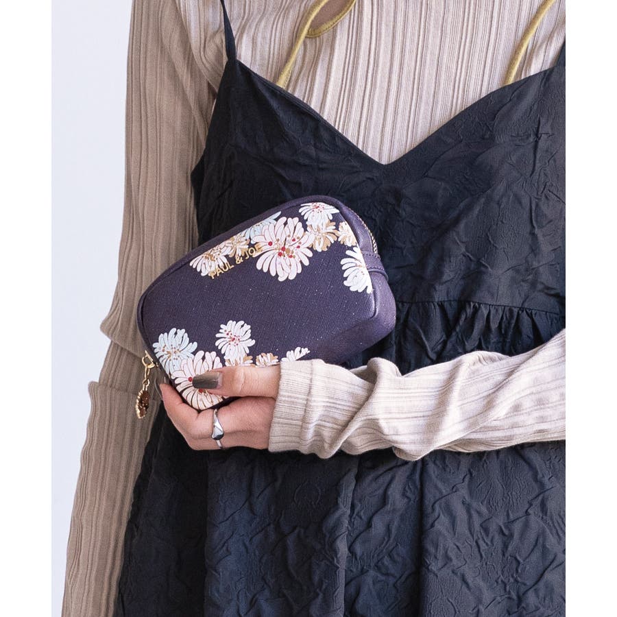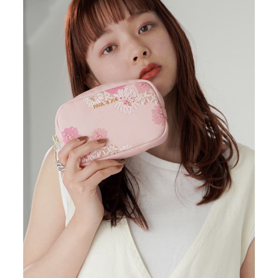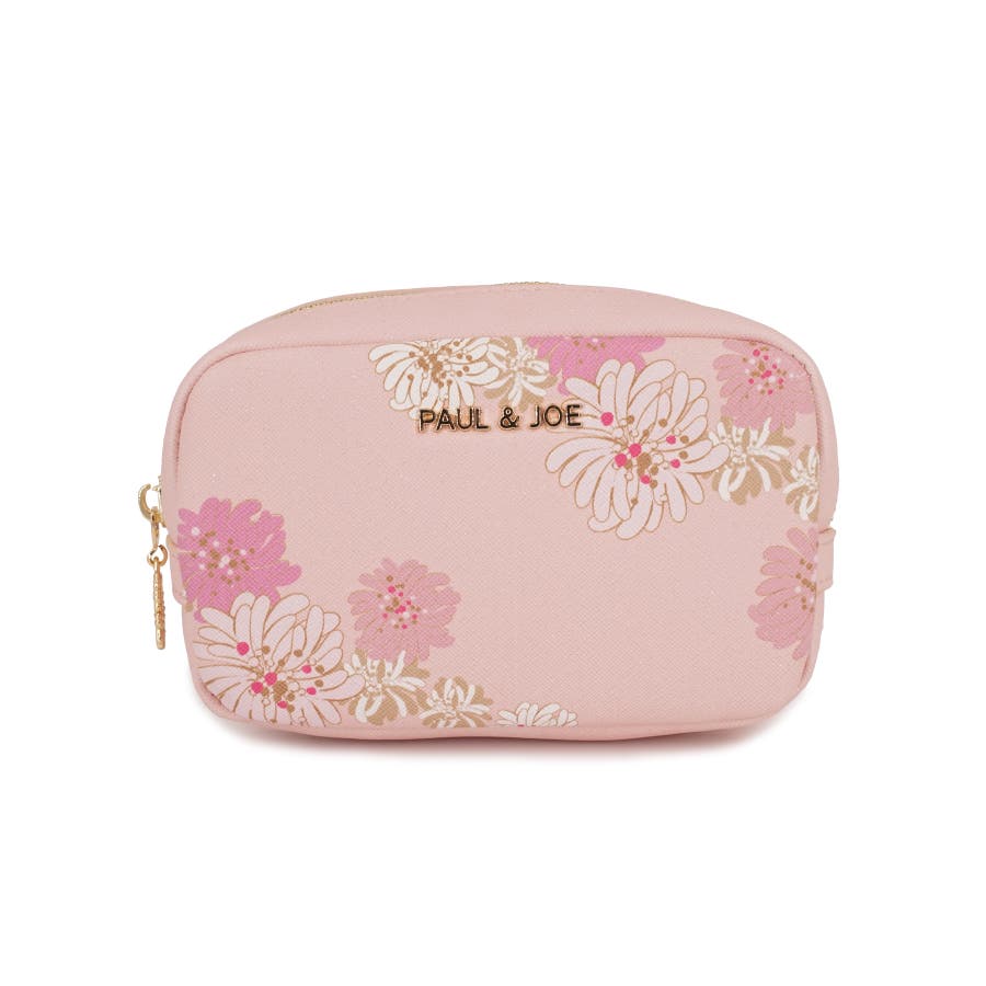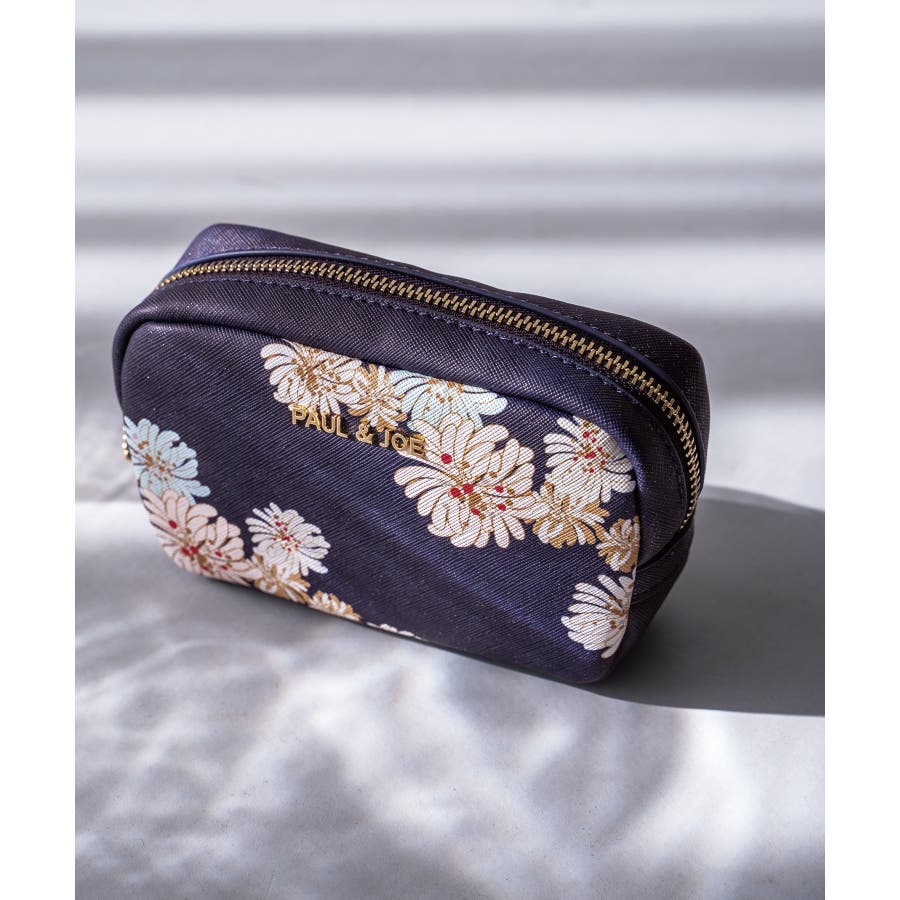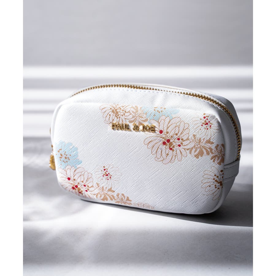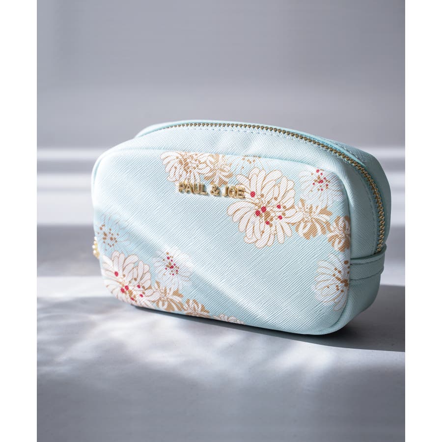 普段のメイク用品の持ち運びを可愛く。PAUL&JOEで人気のクリザンテームにラメを散りばめ、使い勝手を考えスクエアディテールに仕上げたマルチポーチ。