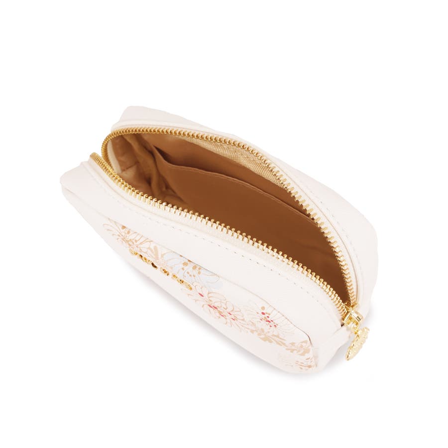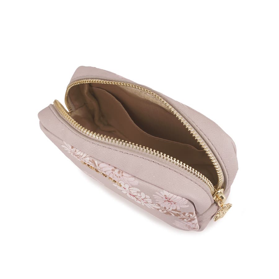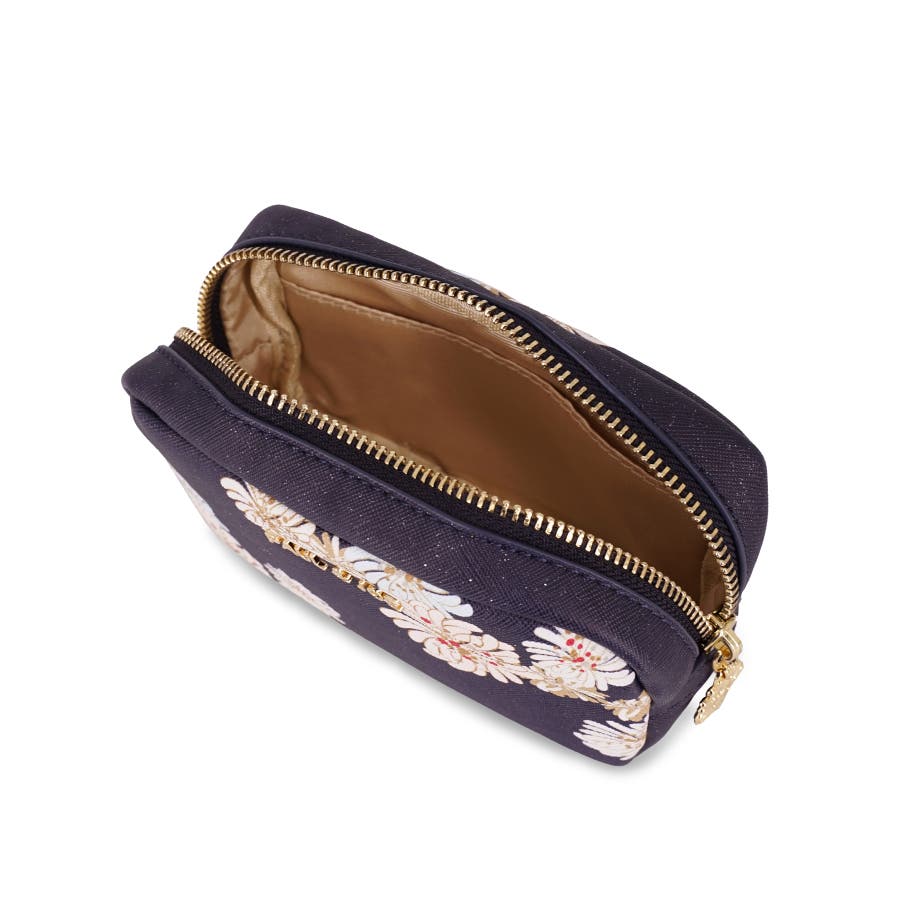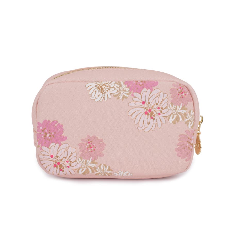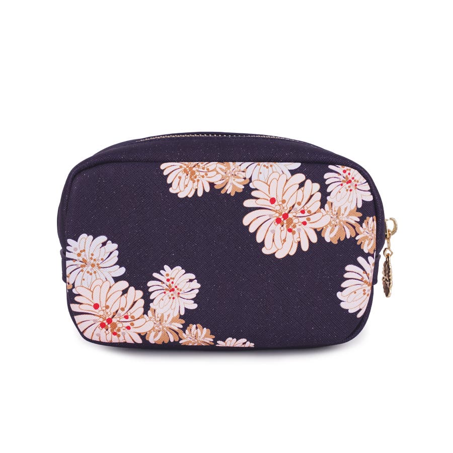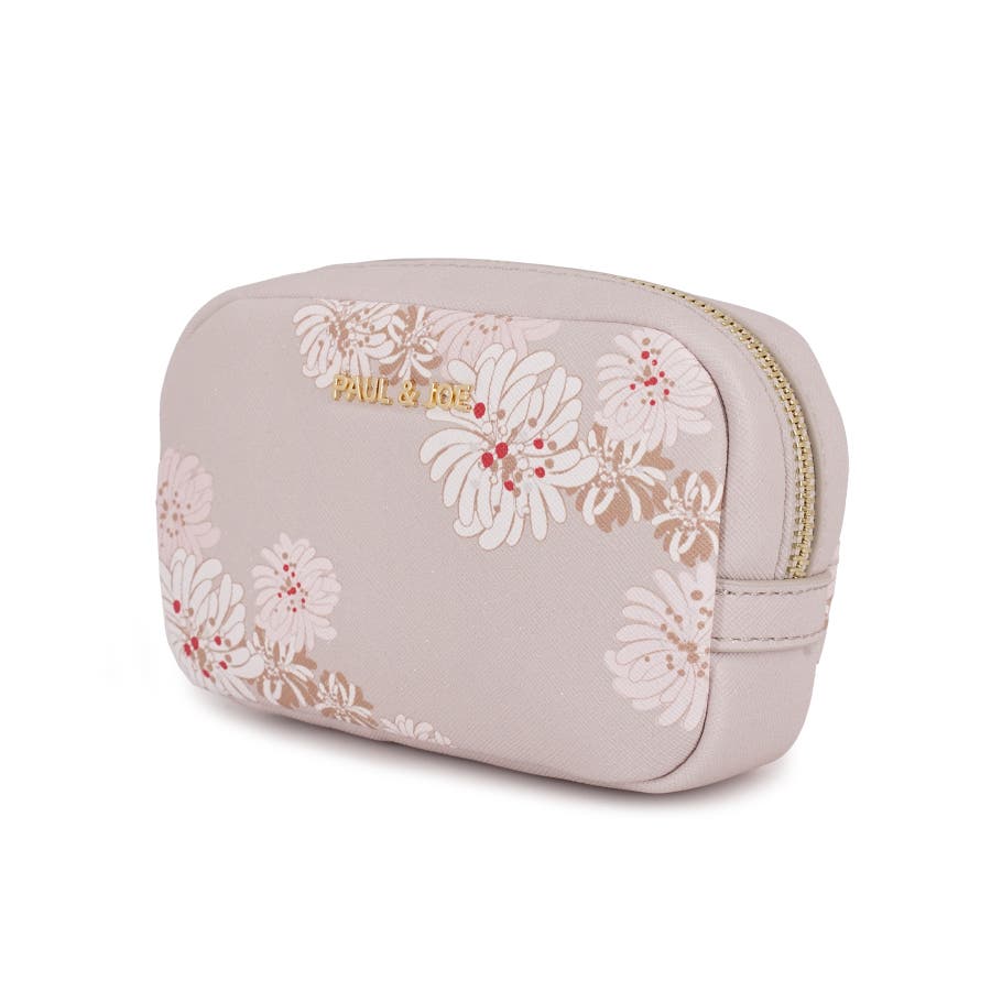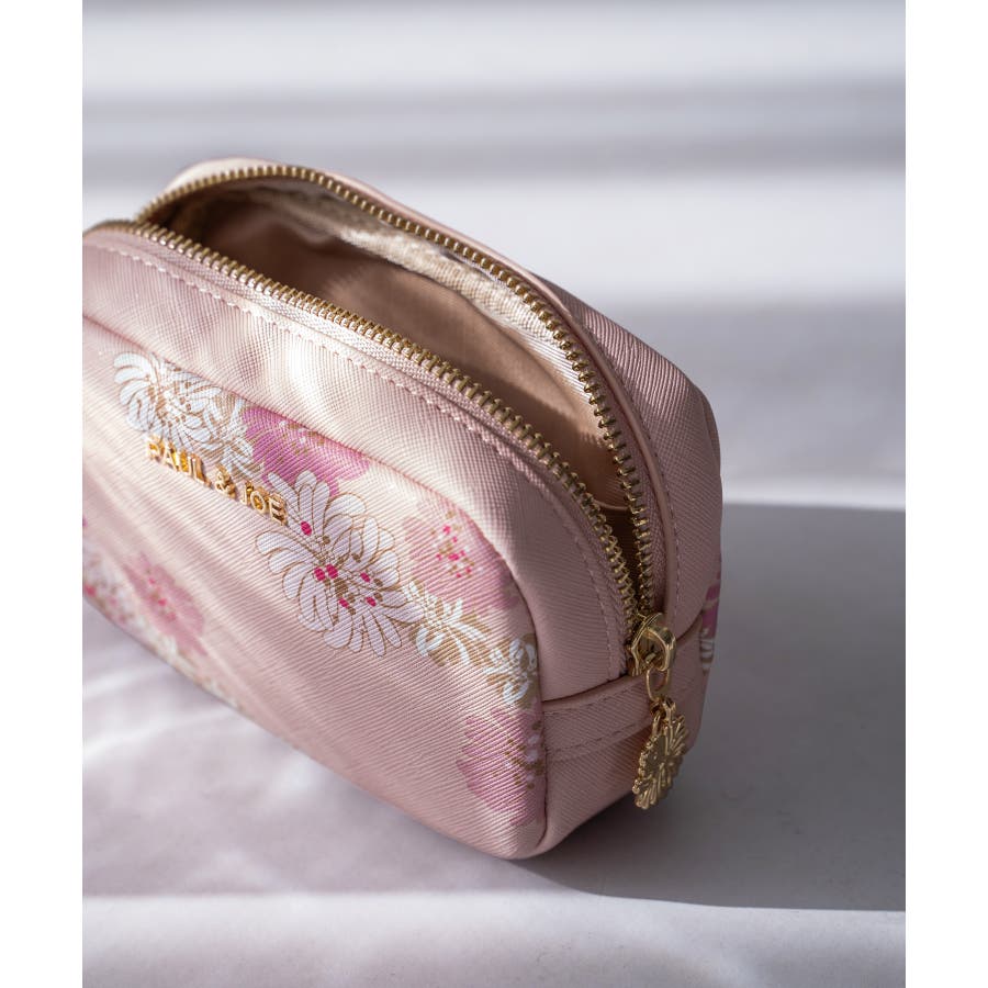 普段のメイク用品の持ち運びを可愛く。PAUL&JOEで人気のクリザンテームにラメを散りばめ、使い勝手を考えスクエアディテールに仕上げたマルチポーチ。