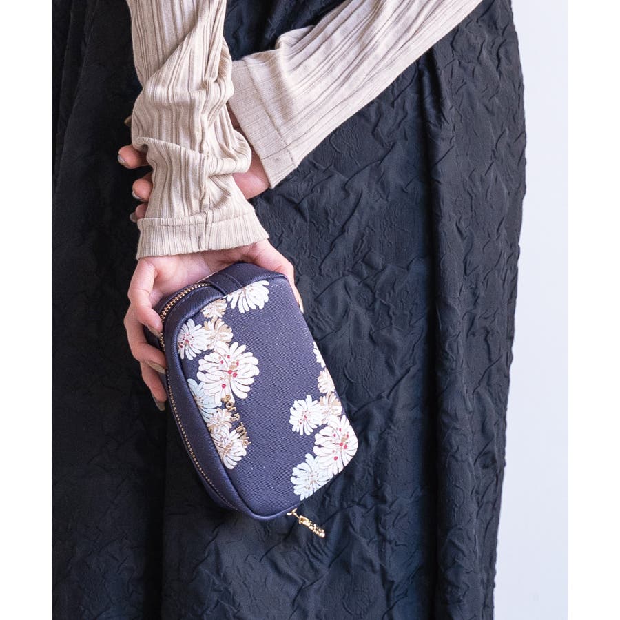 外出の時、人前で使いたくなっちゃう程上品なクリザンテームのポーチは持つだけで女性らしさがアップ。