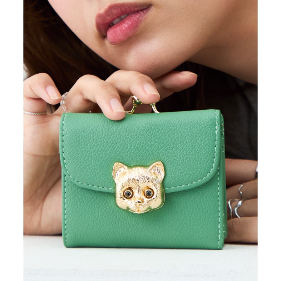 可愛い口金にかぶせを合わせる事でネコメタルが際立つ個性派デザインに。