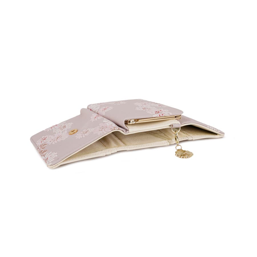 財布のサイドにはこれまでのカラーのクリザンテームから一新したワントーンのクリザンテームのチャームを使用。
