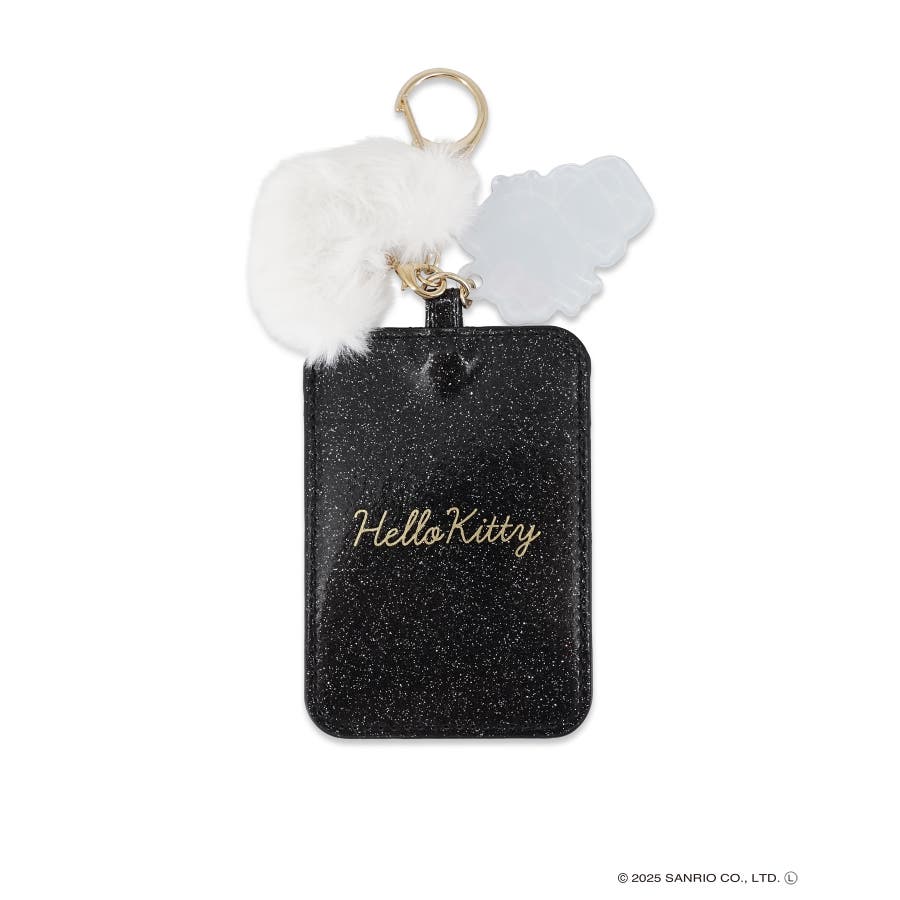 ふわふわのハート型ファーと、ギャルなキティのキャラクターのアクリルキーホルダーがセットになった、とびきりキュートなパスケースです!