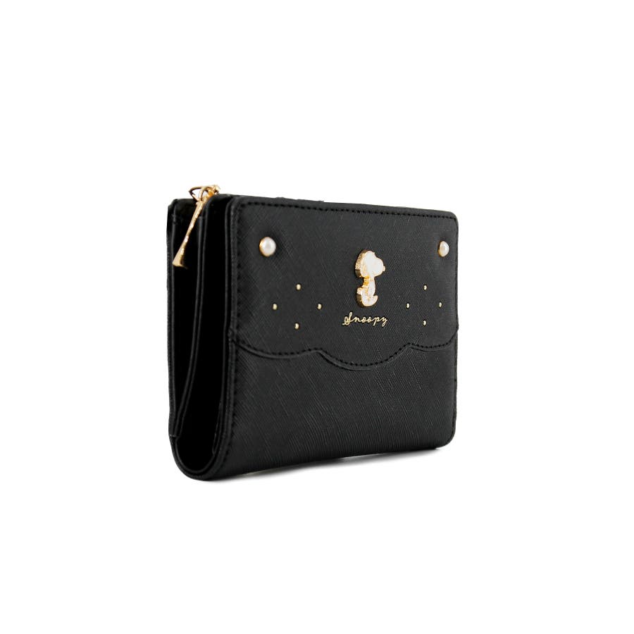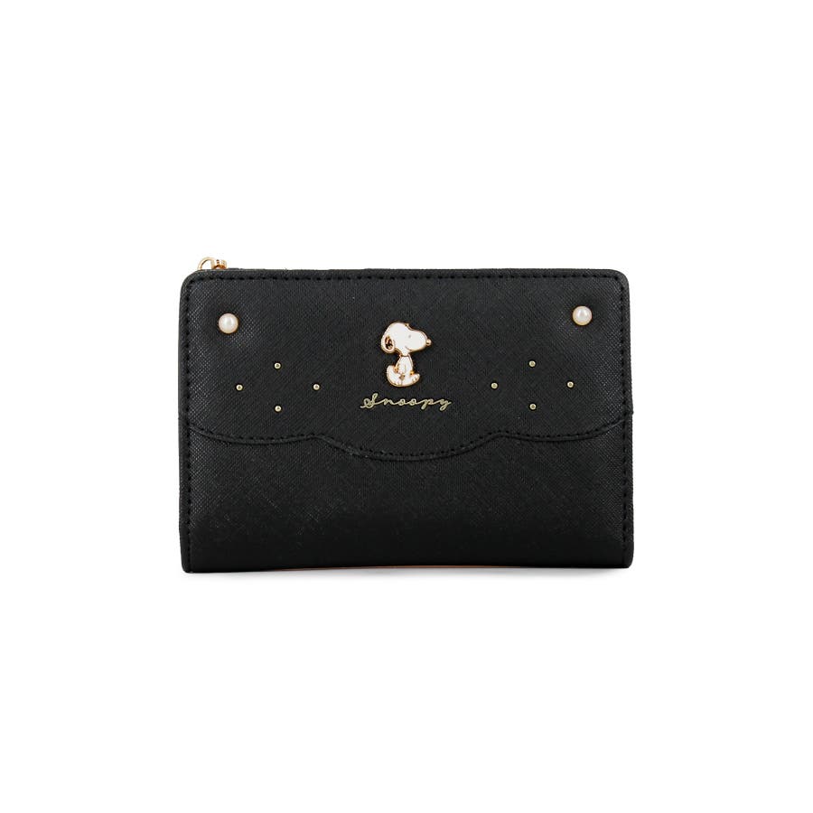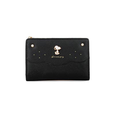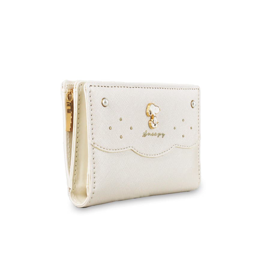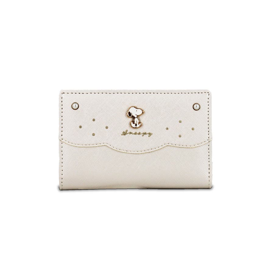 真珠のようなキラキラとしたパールのアクセントが大人可愛いスヌーピーの二つ折り財布。
