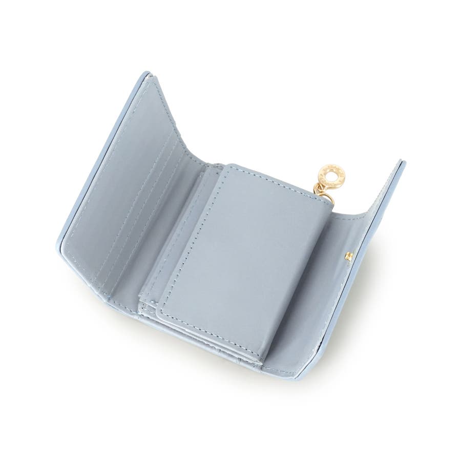 コンパクトな三つ折りタイプながら、カードポケットやBOX型小銭入れを備え、収納力も◎。