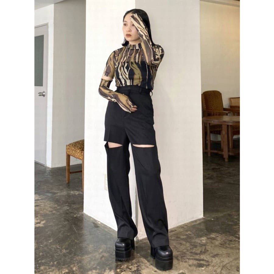 カットアウトストレートパンツ