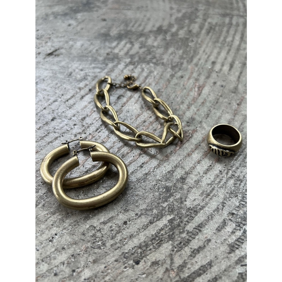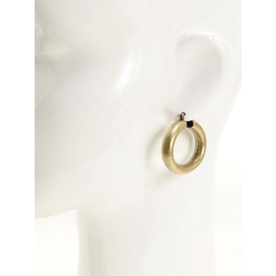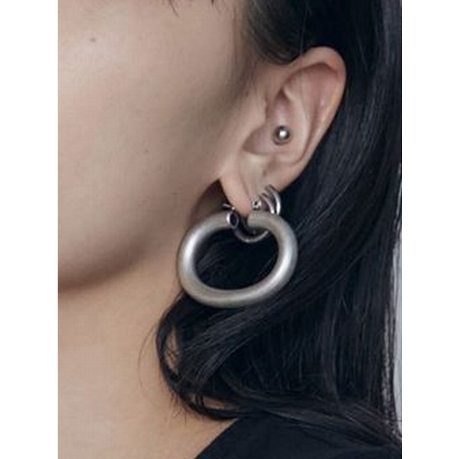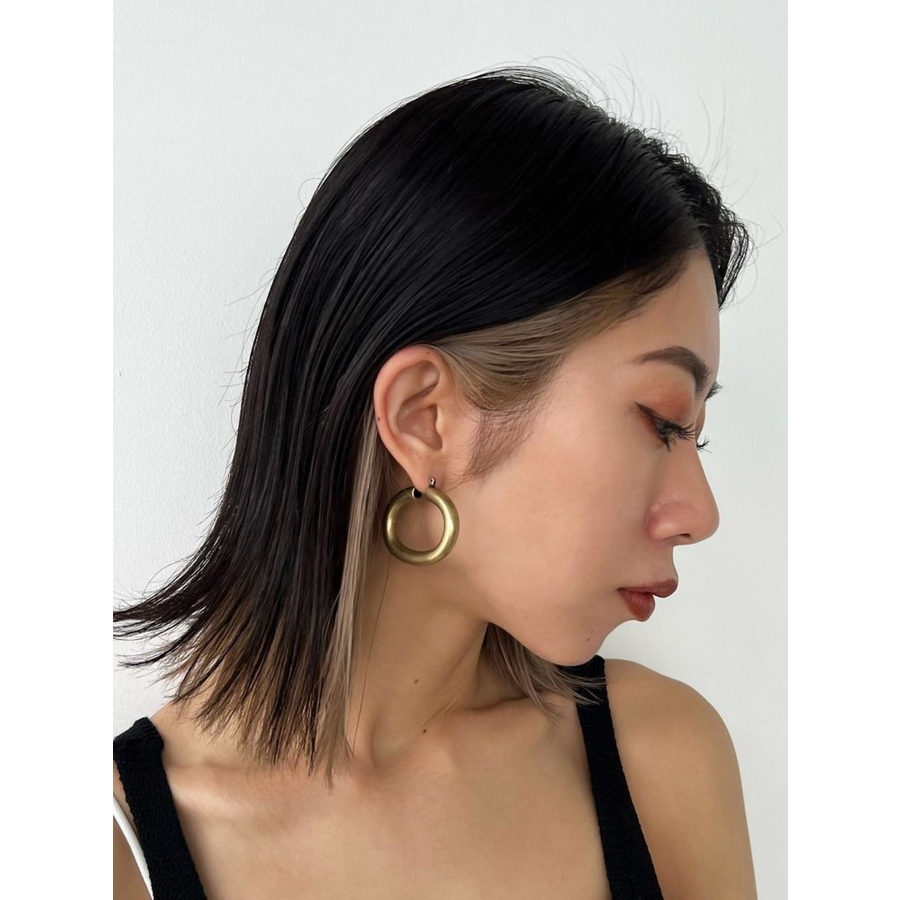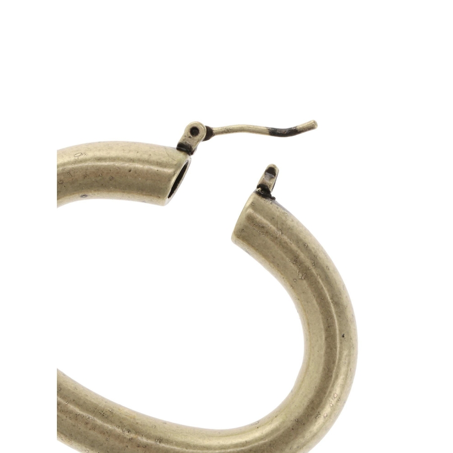 楕円形状のフープピアスです。ヴィンテージ風の加工を施したつけるだけでポイントになるピアスです。ぽってりとしたボリューム感がありますが、フープの内側は空洞になっているため非常に軽く、長時間の着用でも疲れにくいです。