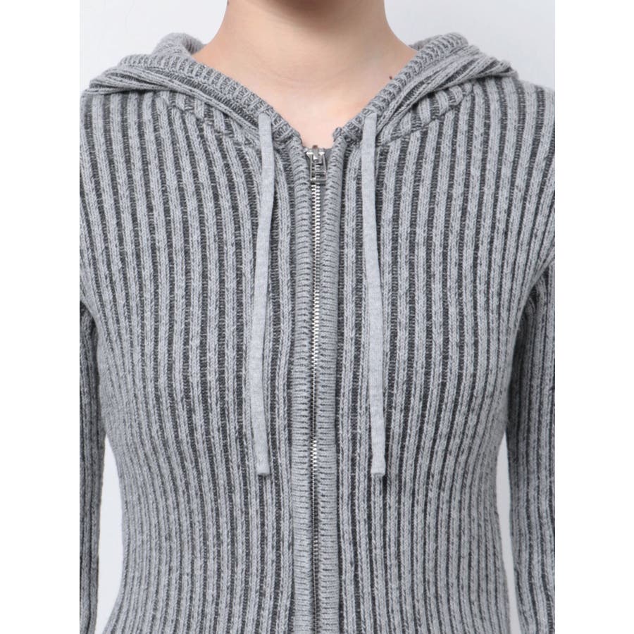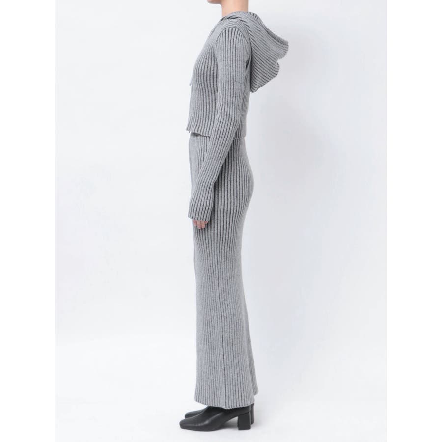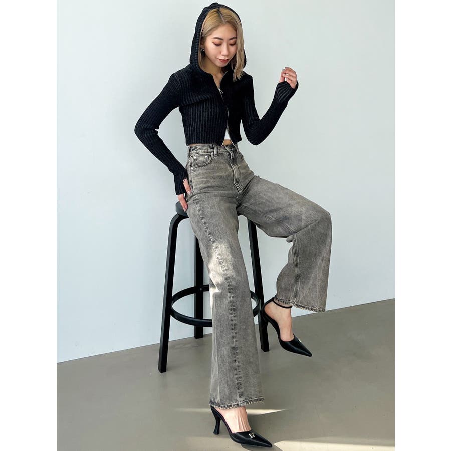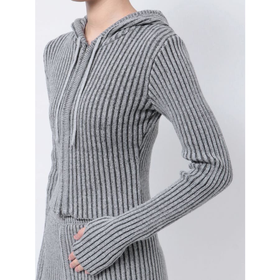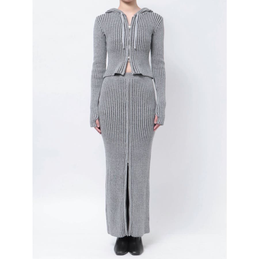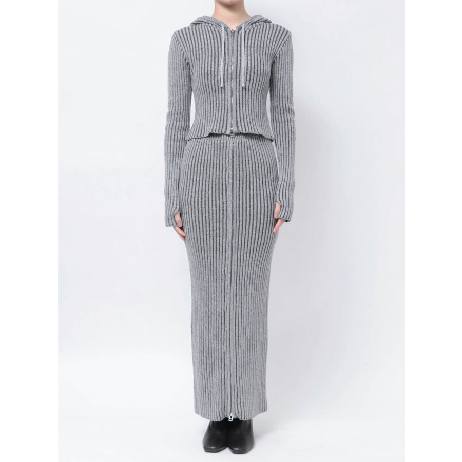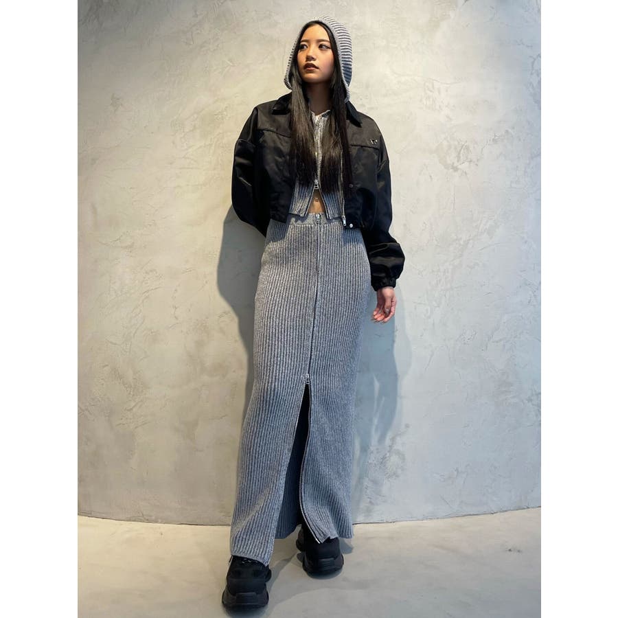 ニットパーカーはへそ上のショート丈でタイトなシルエットです。